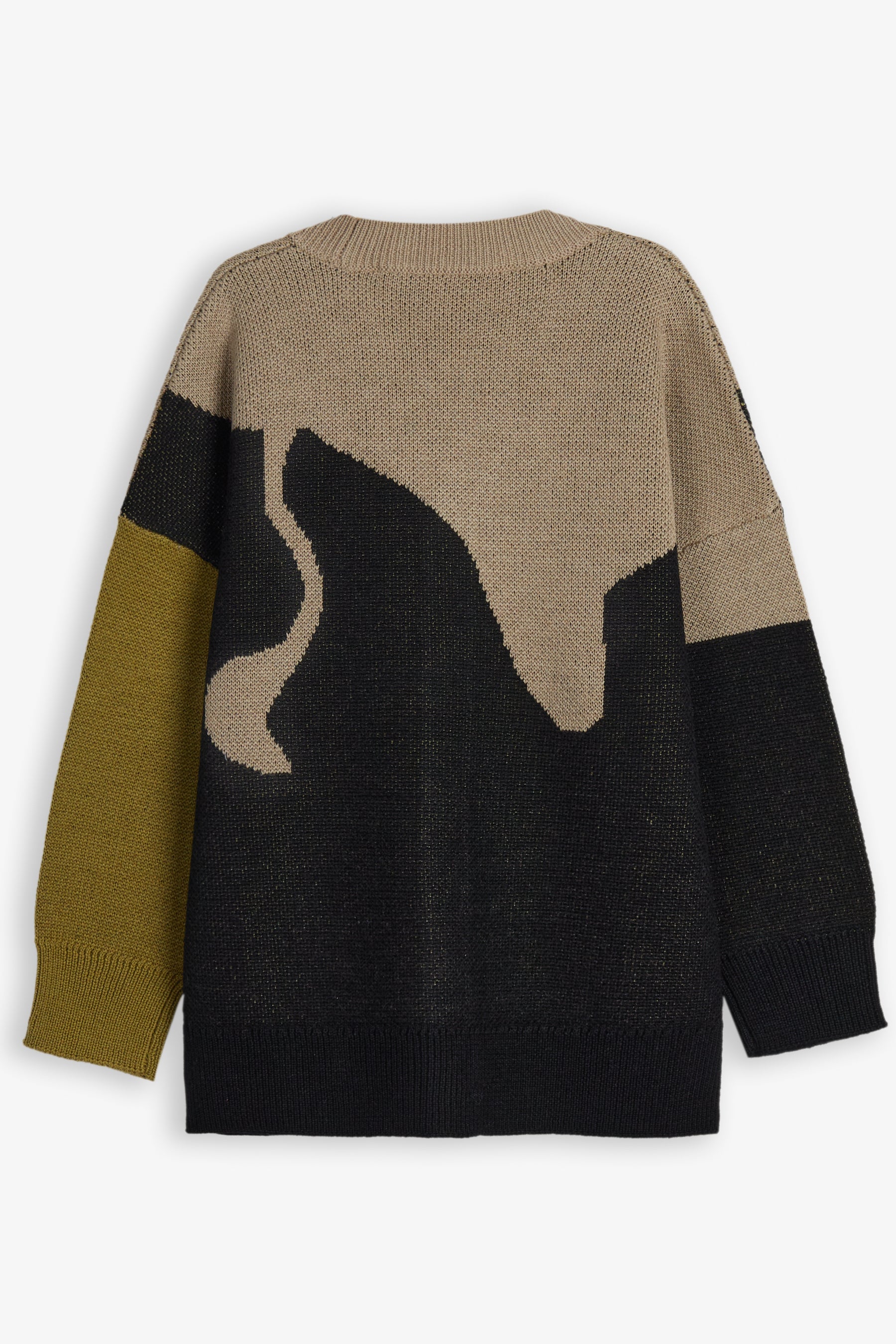 Knitted v-neck intarsia cardigan, long sleeves, front buttons