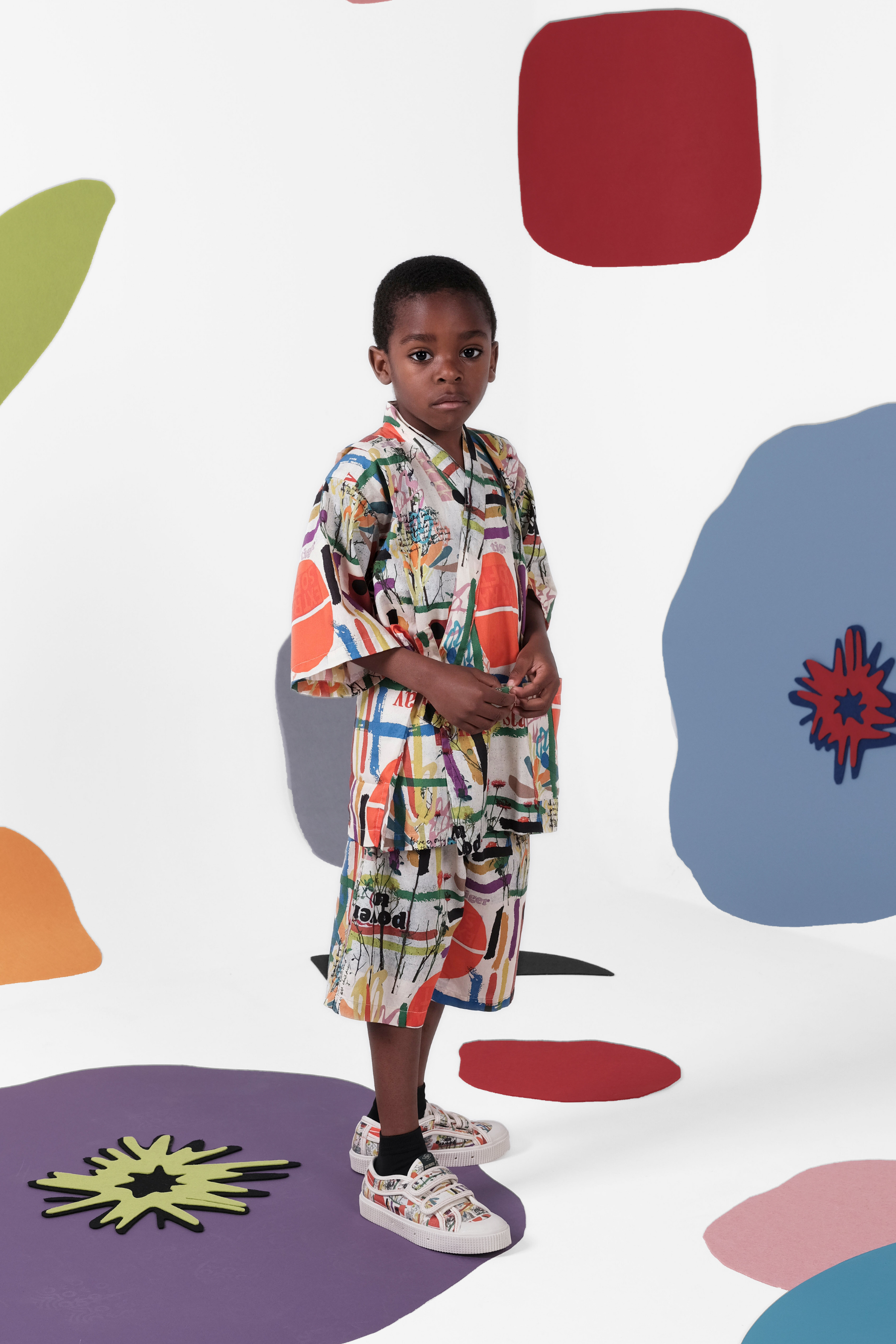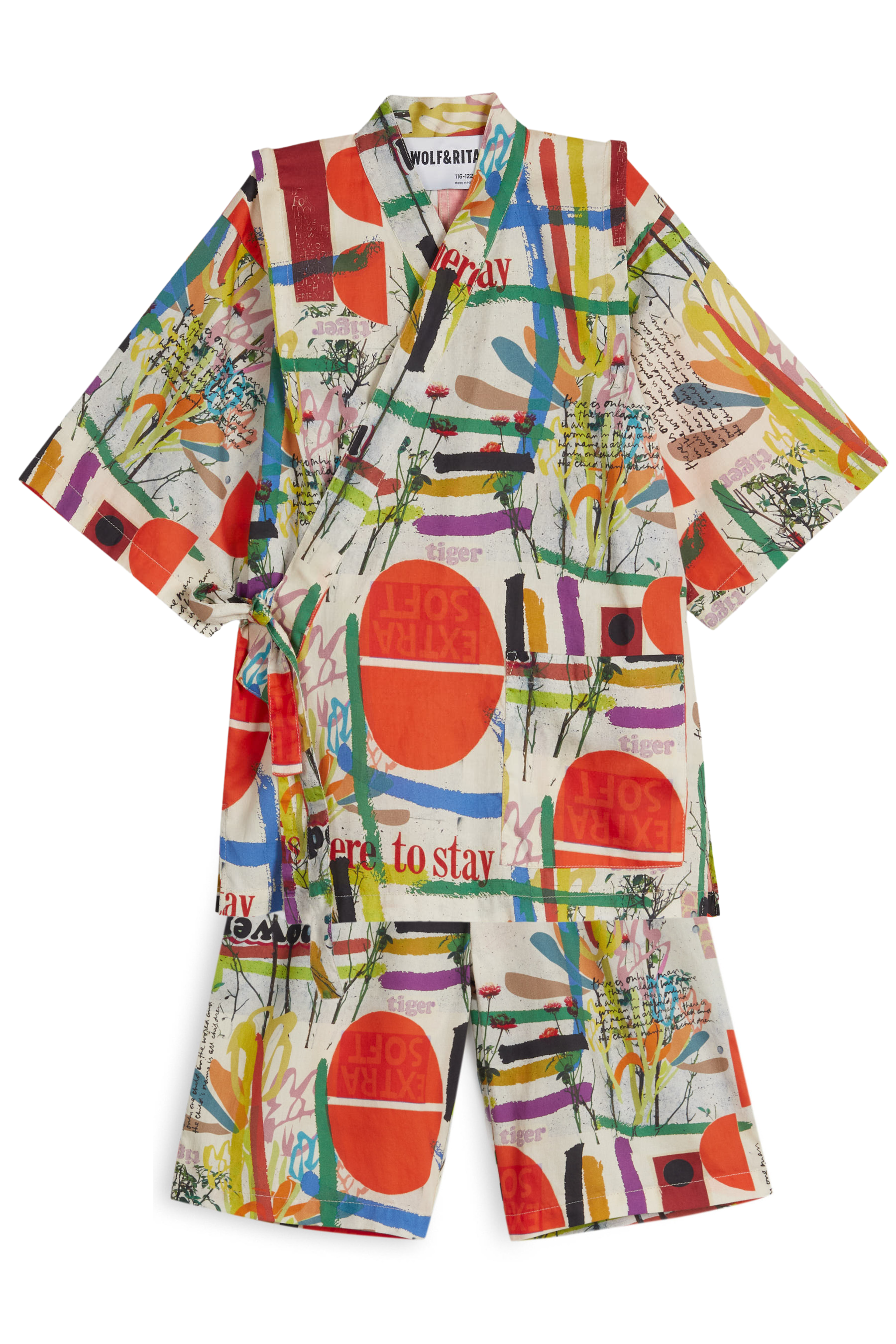 Classic kids Jinbei set, with short sleeved kimono cross over style with ties and shorts with elasticated waist
