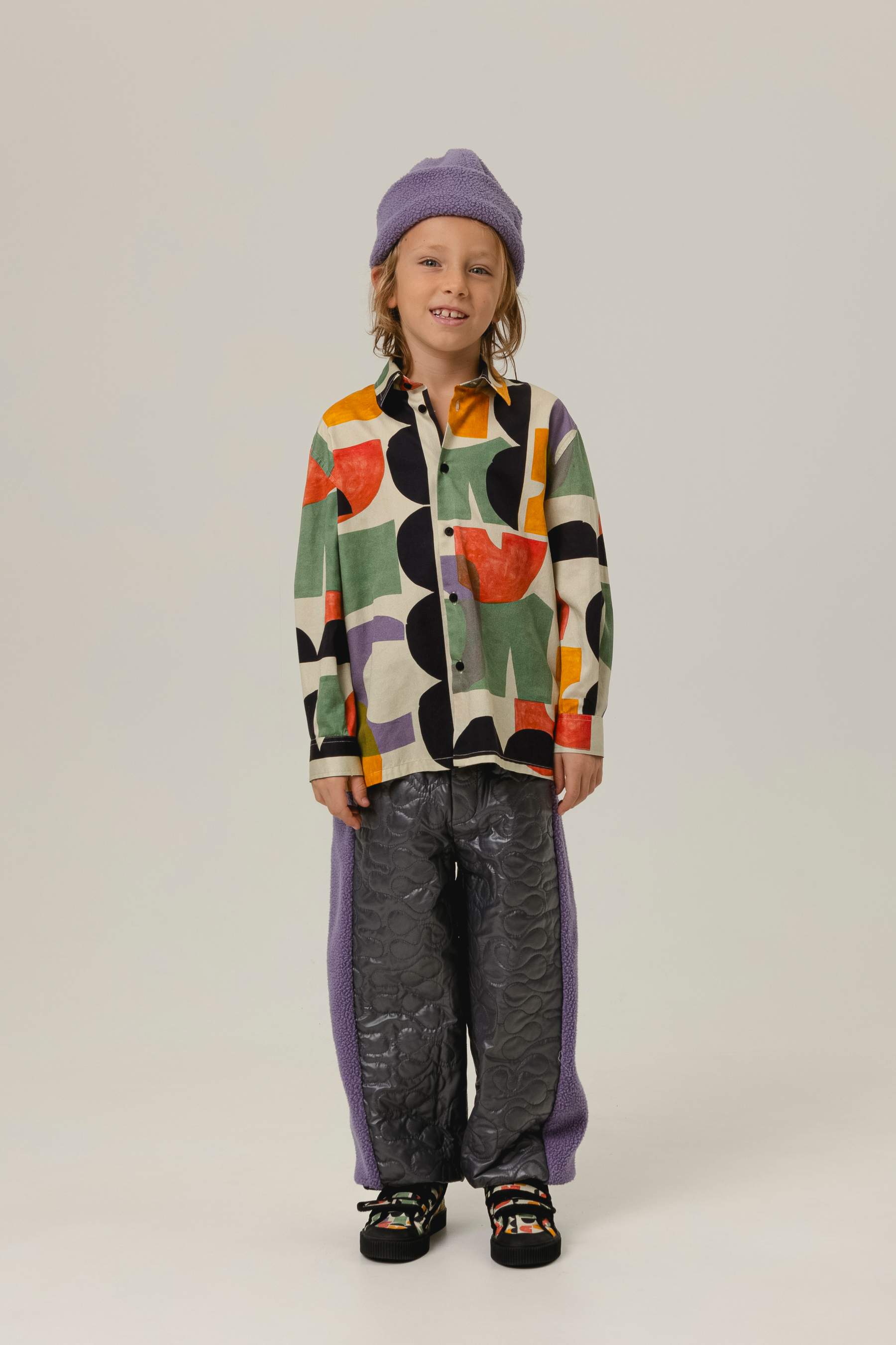 Long sleeved button-up shirt, regular collar, cuff buttons, loose fit