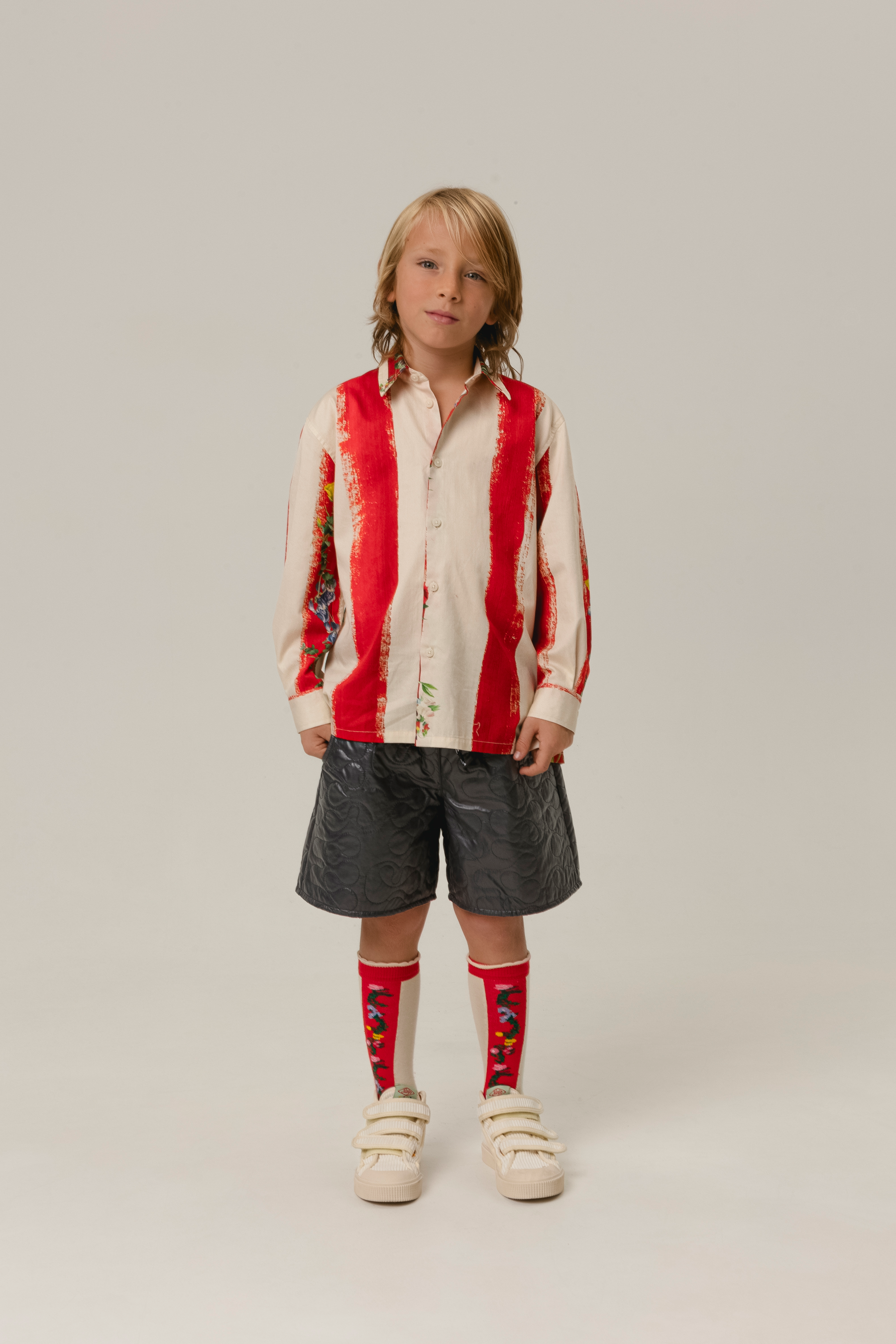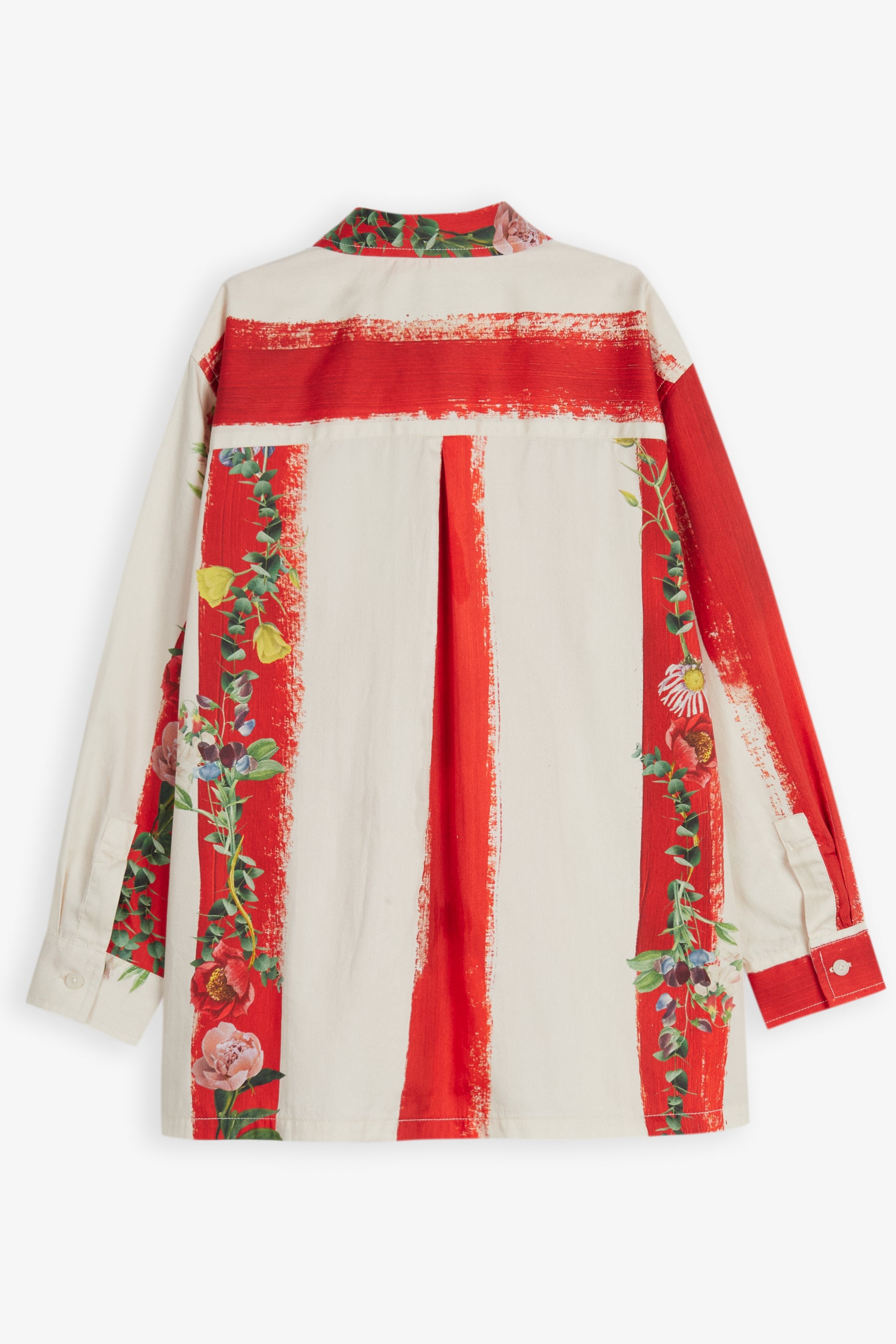 Long sleeved button-up shirt, regular collar, cuff buttons, loose fit