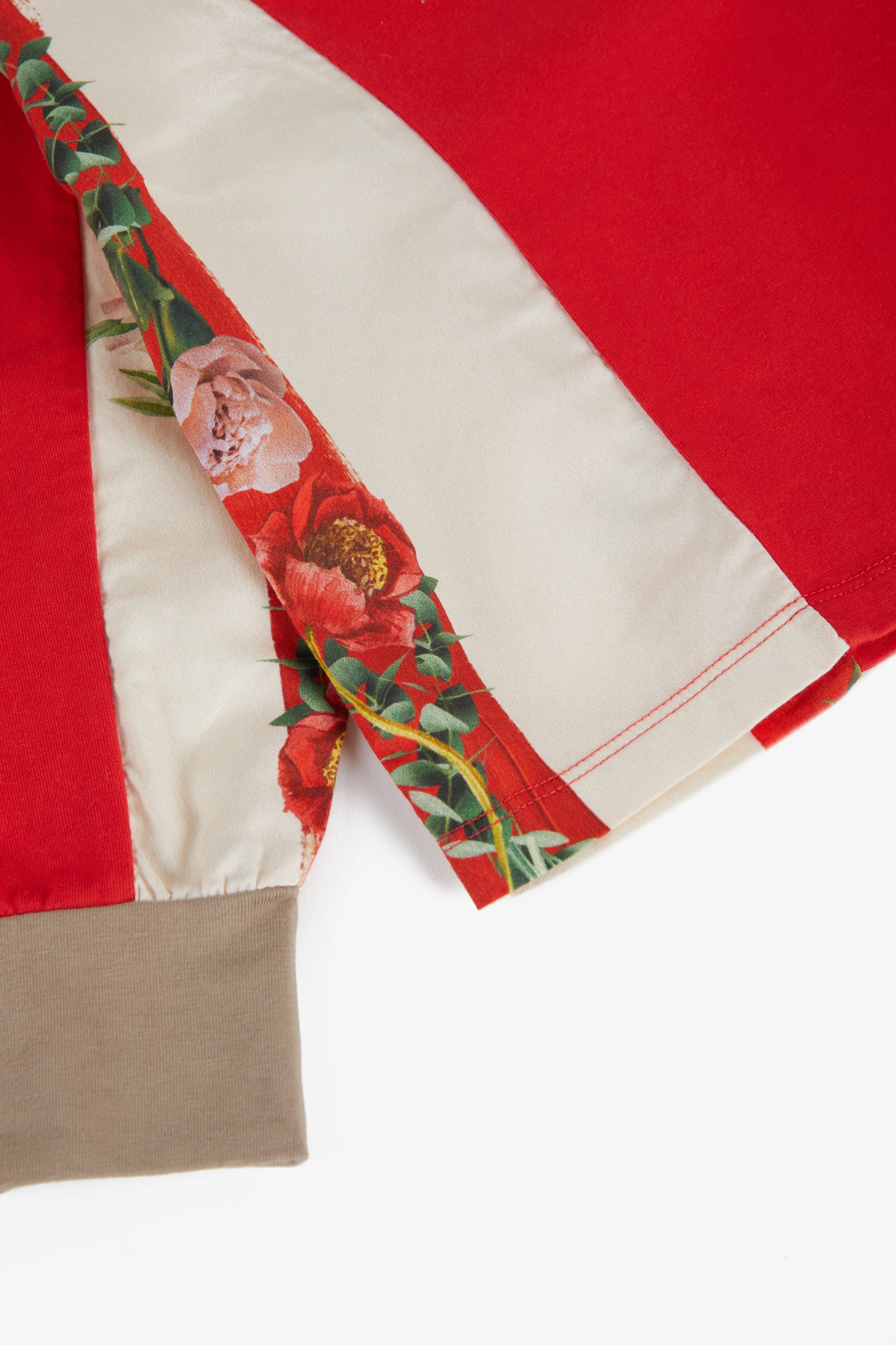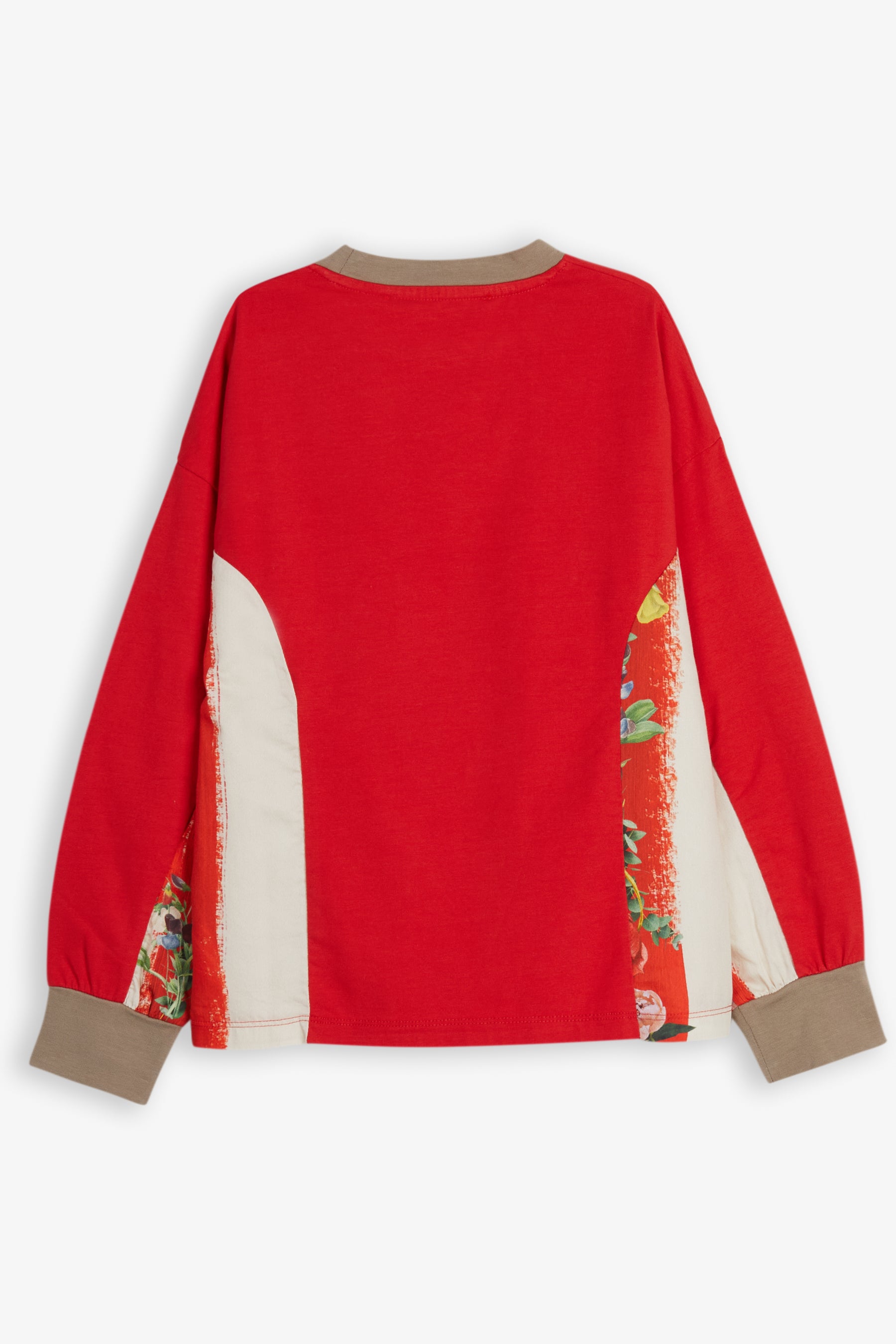 Long sleeved panelled t-shirt, contrasted collar and ribbed cuffs, small embroidery