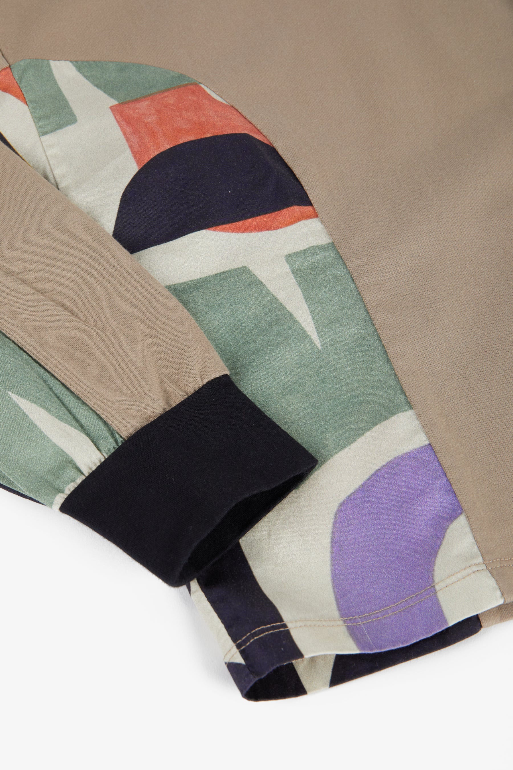 Long sleeved panelled t-shirt, contrasted collar and ribbed cuffs, small embroidery