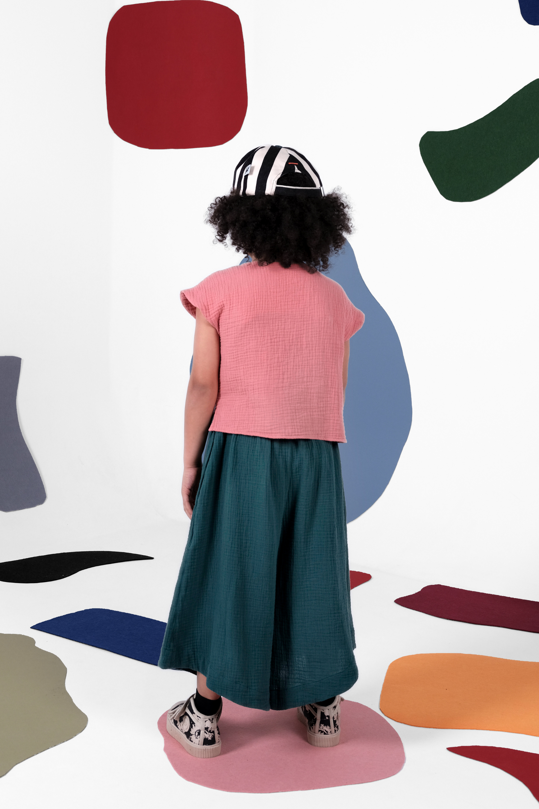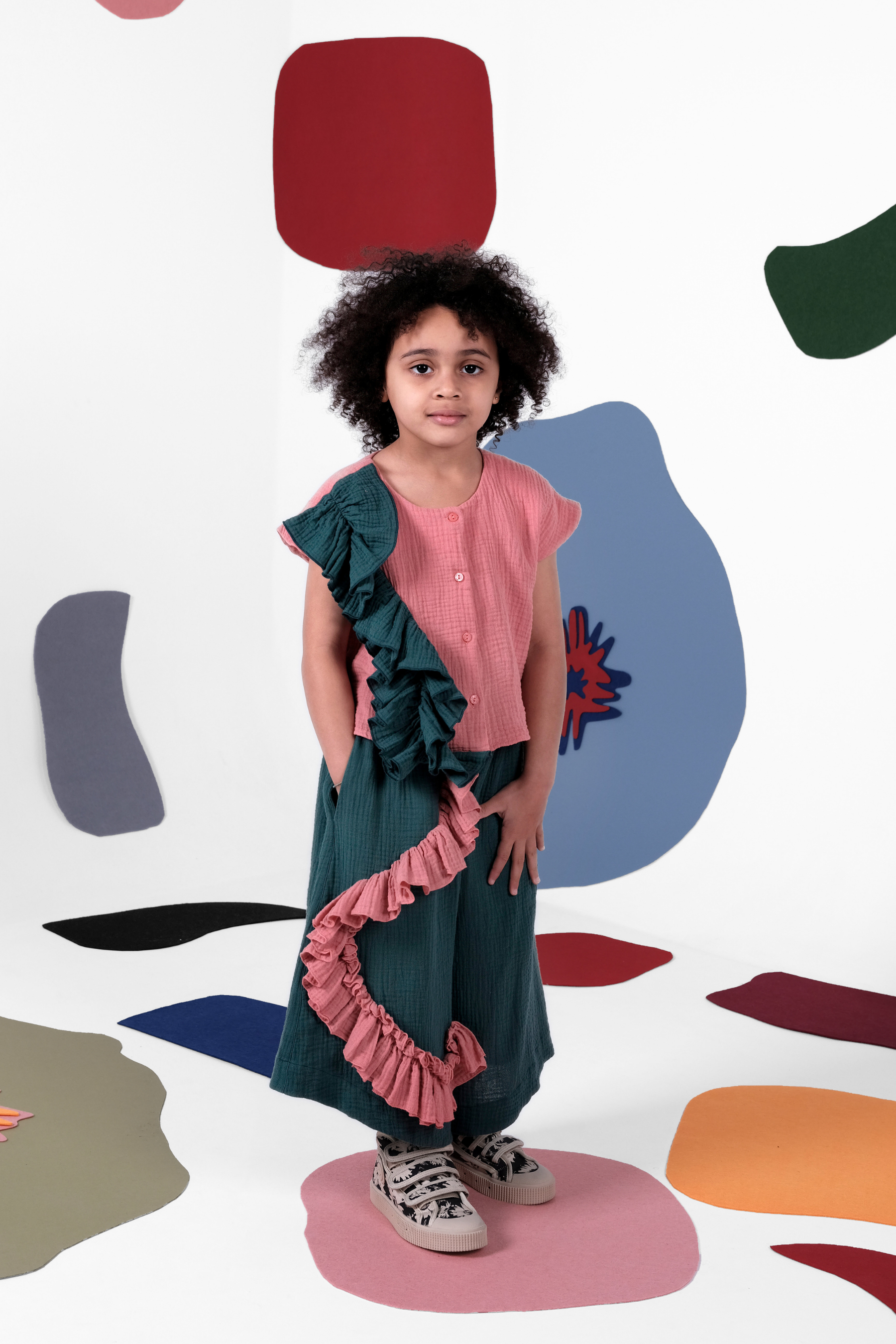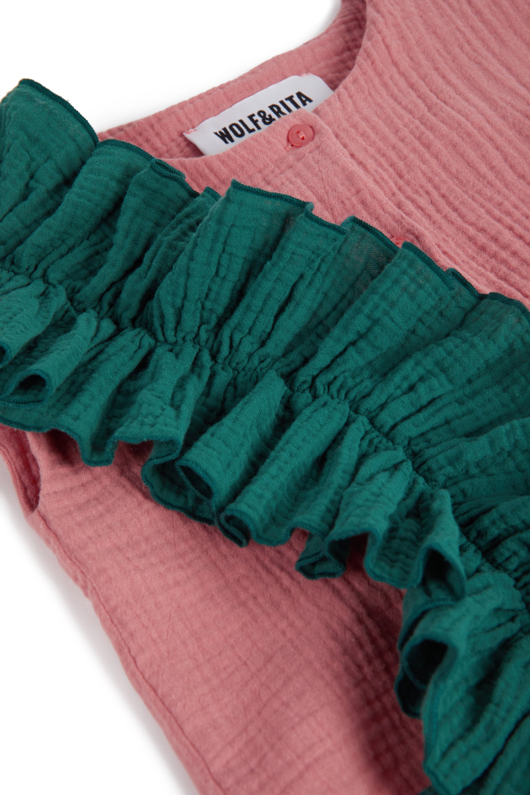Sleeveless cropped blouse with front buttons and contrasted frill detail