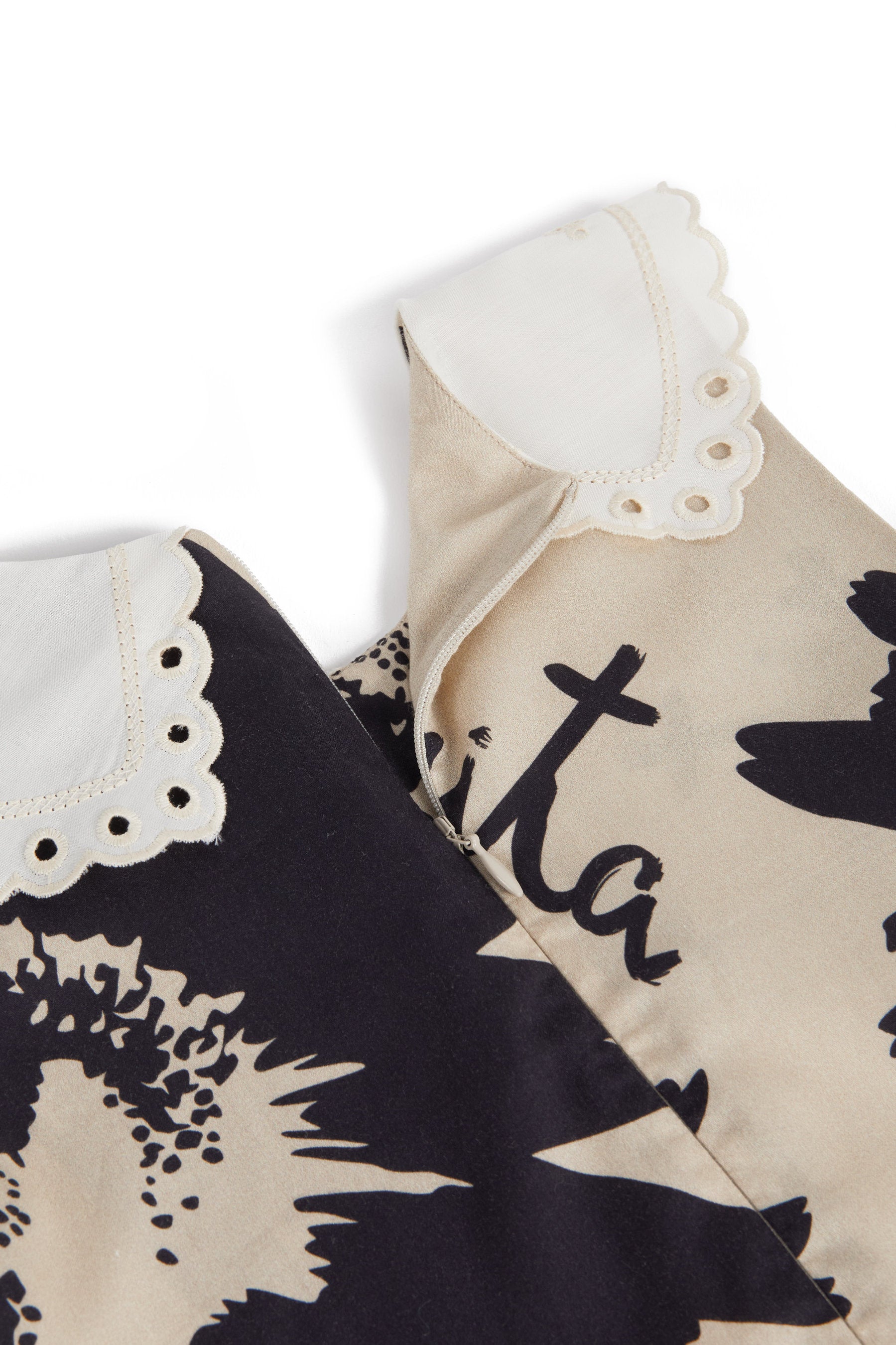 Sleeveless A-line dress with contrasted embroidered collar and inner side pockets