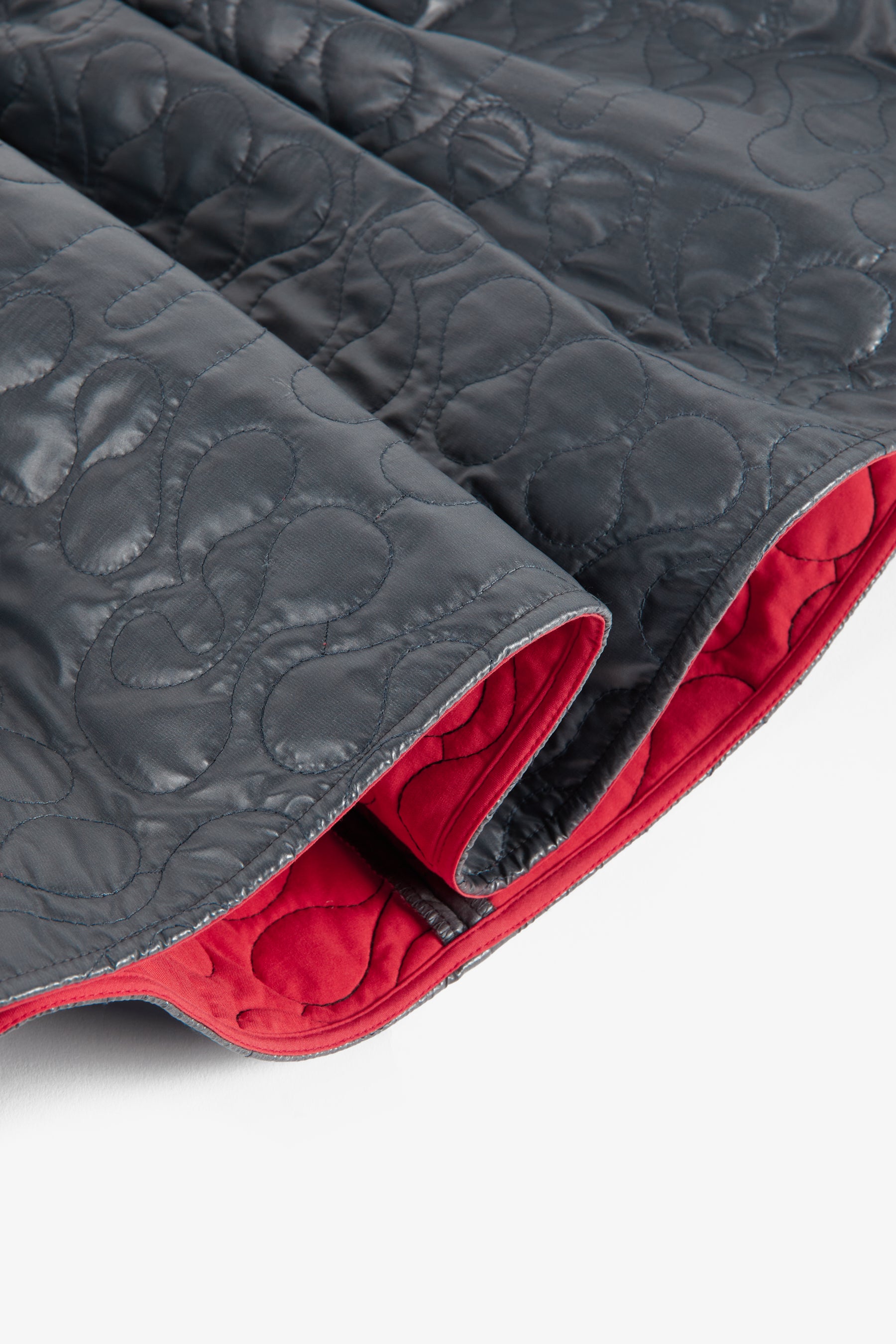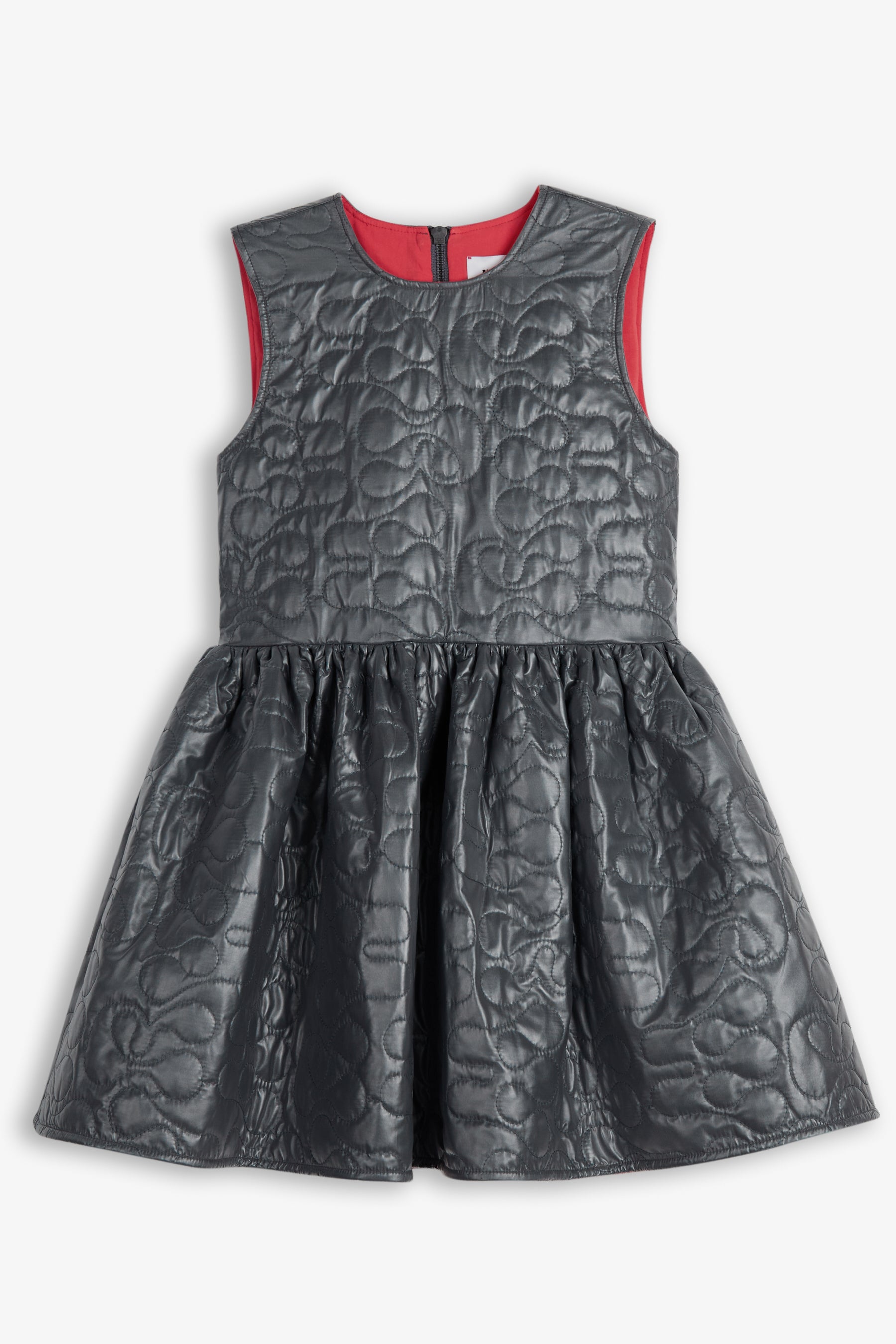 Sleeveless, below the knee flared dress, zip closure (back), padded, with custom WR pattern and contrasted lining