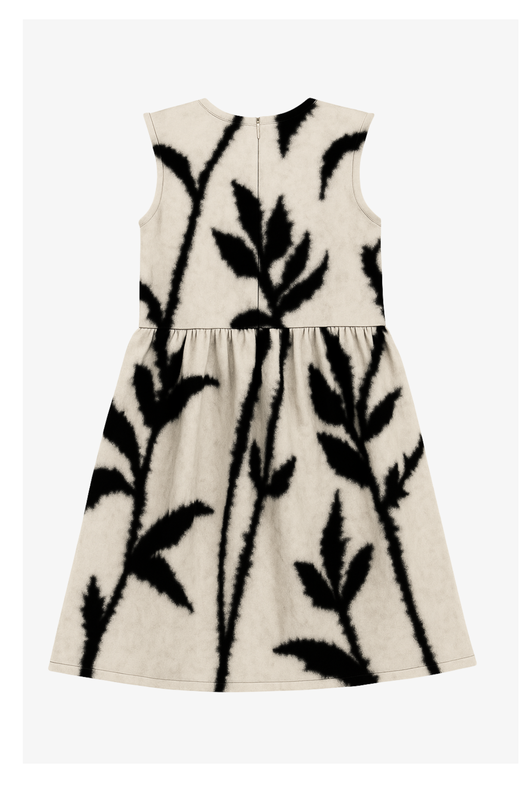 Sleeveless, below the knee flared dress, zip closure (back)