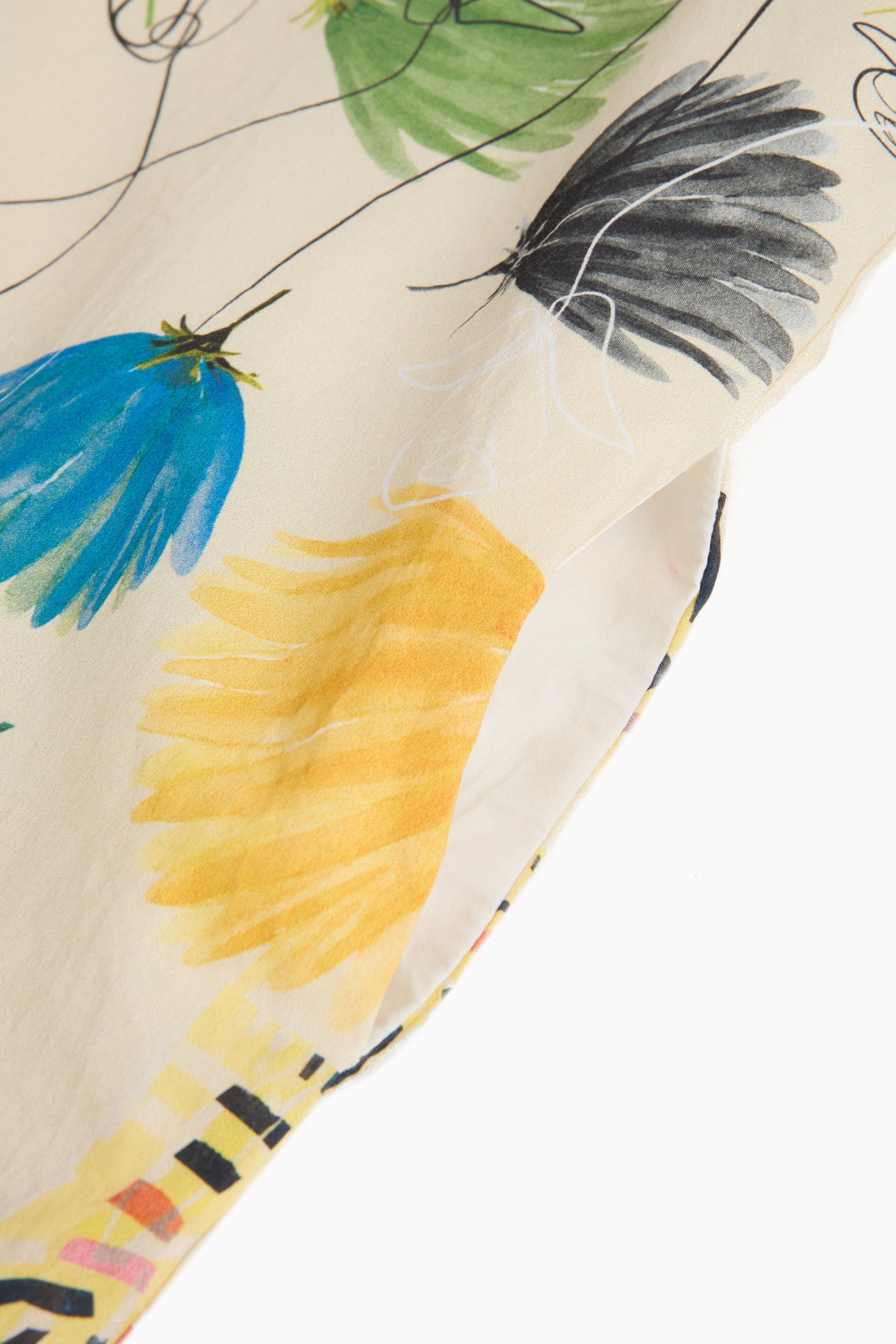 Short sleeved below-the-knee dress, boxy oversized fit, with seam pockets and front buttons