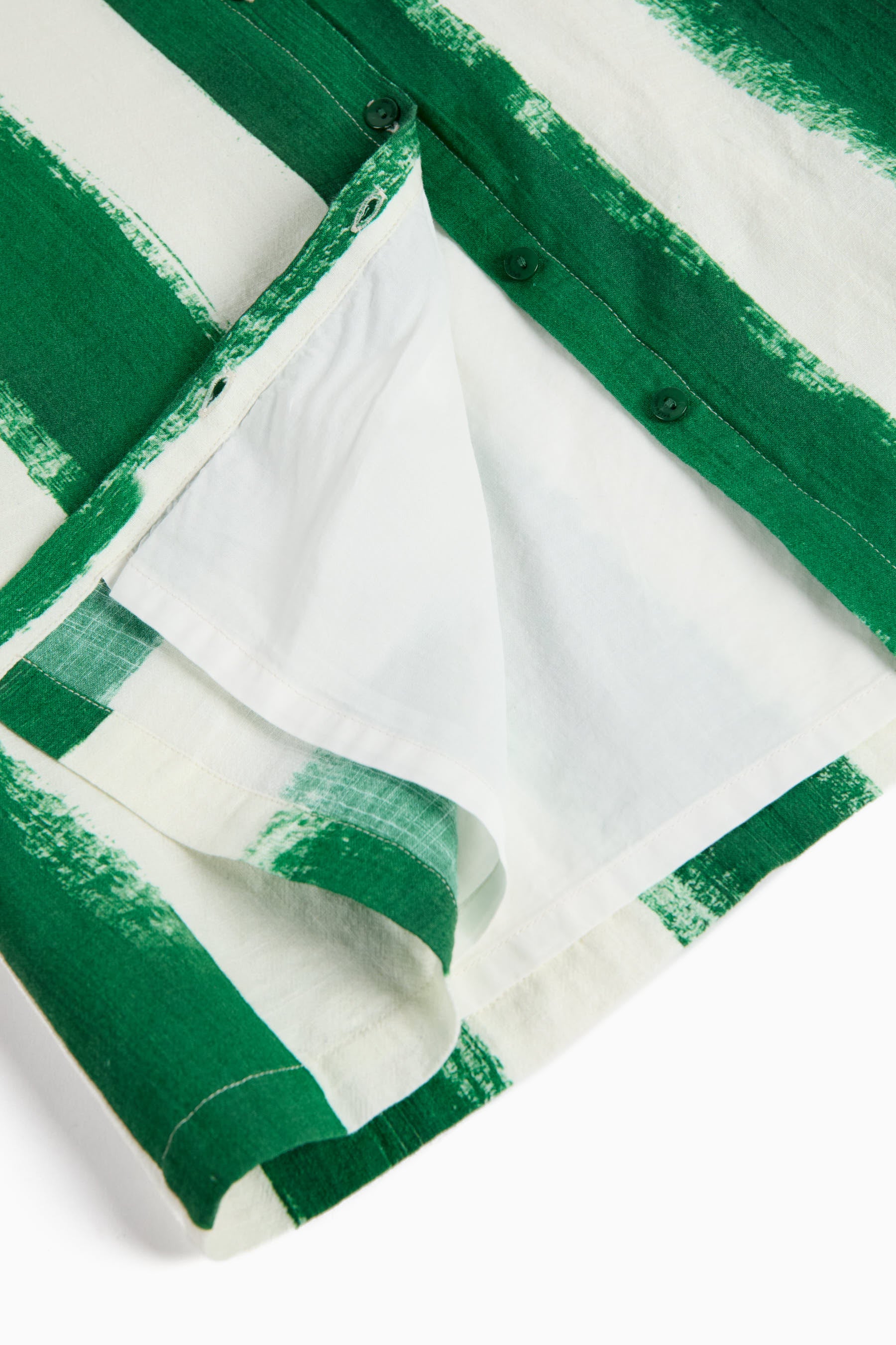Short sleeved below-the-knee dress, boxy oversized fit, with seam pockets and front buttons
