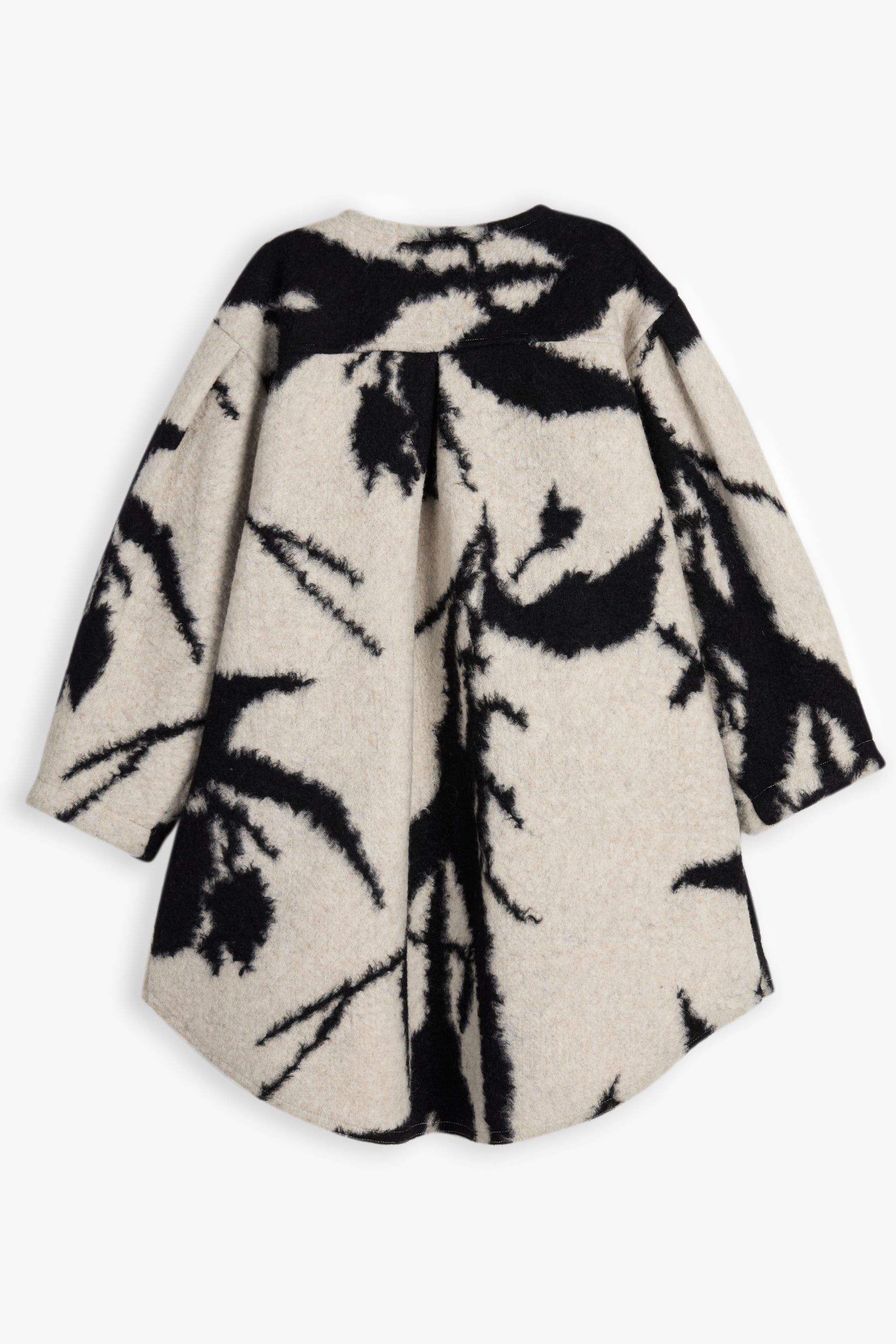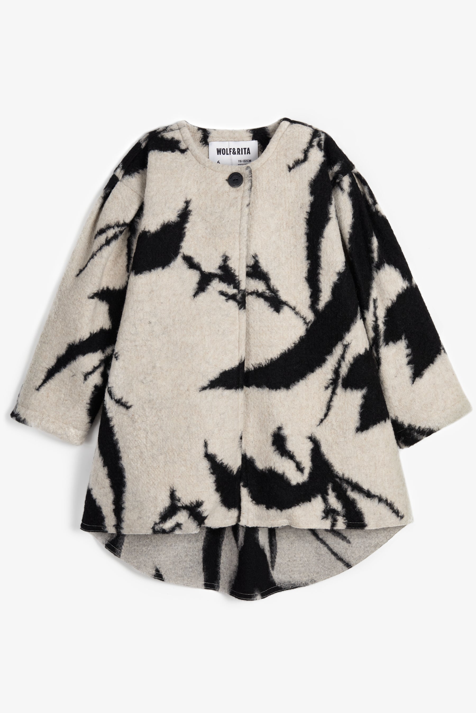Ballooned coat with long sleeves, longer back with plaid detail, front button