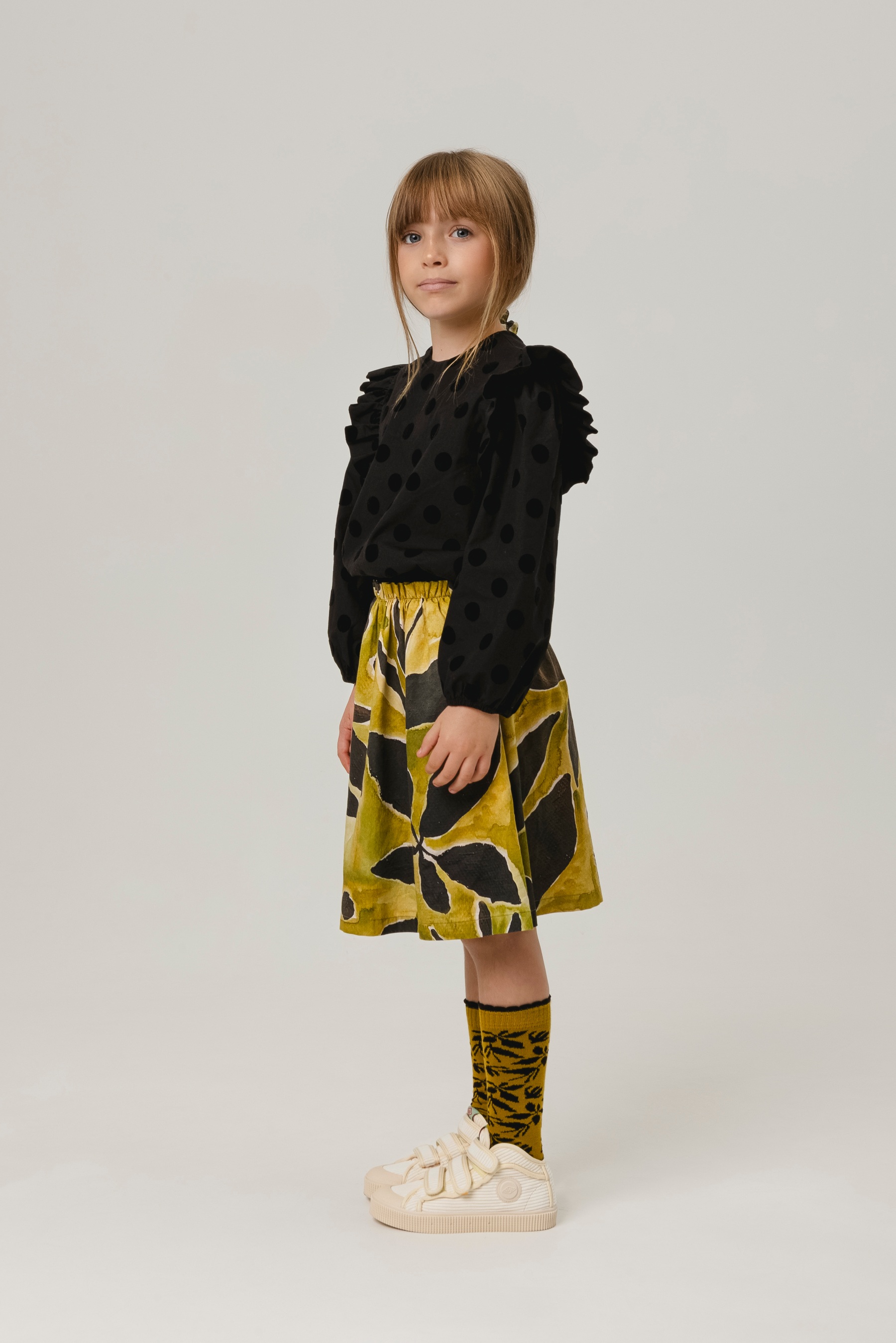 Clara is 123cm tall and is wearing size 6Y