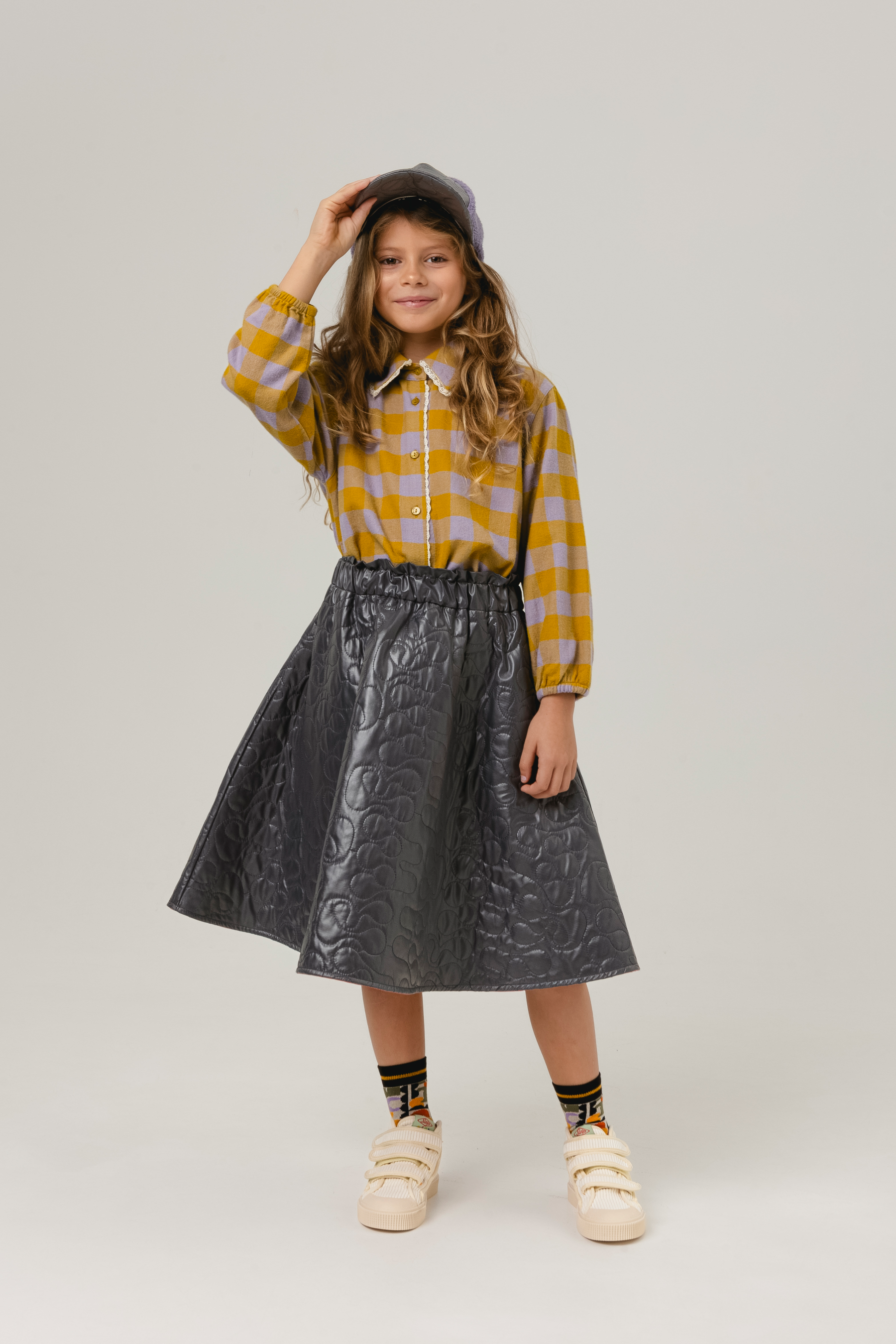 Below the knee flared skirt, padded, with custom WR pattern and contrasted lining, side pockets, elastic waist