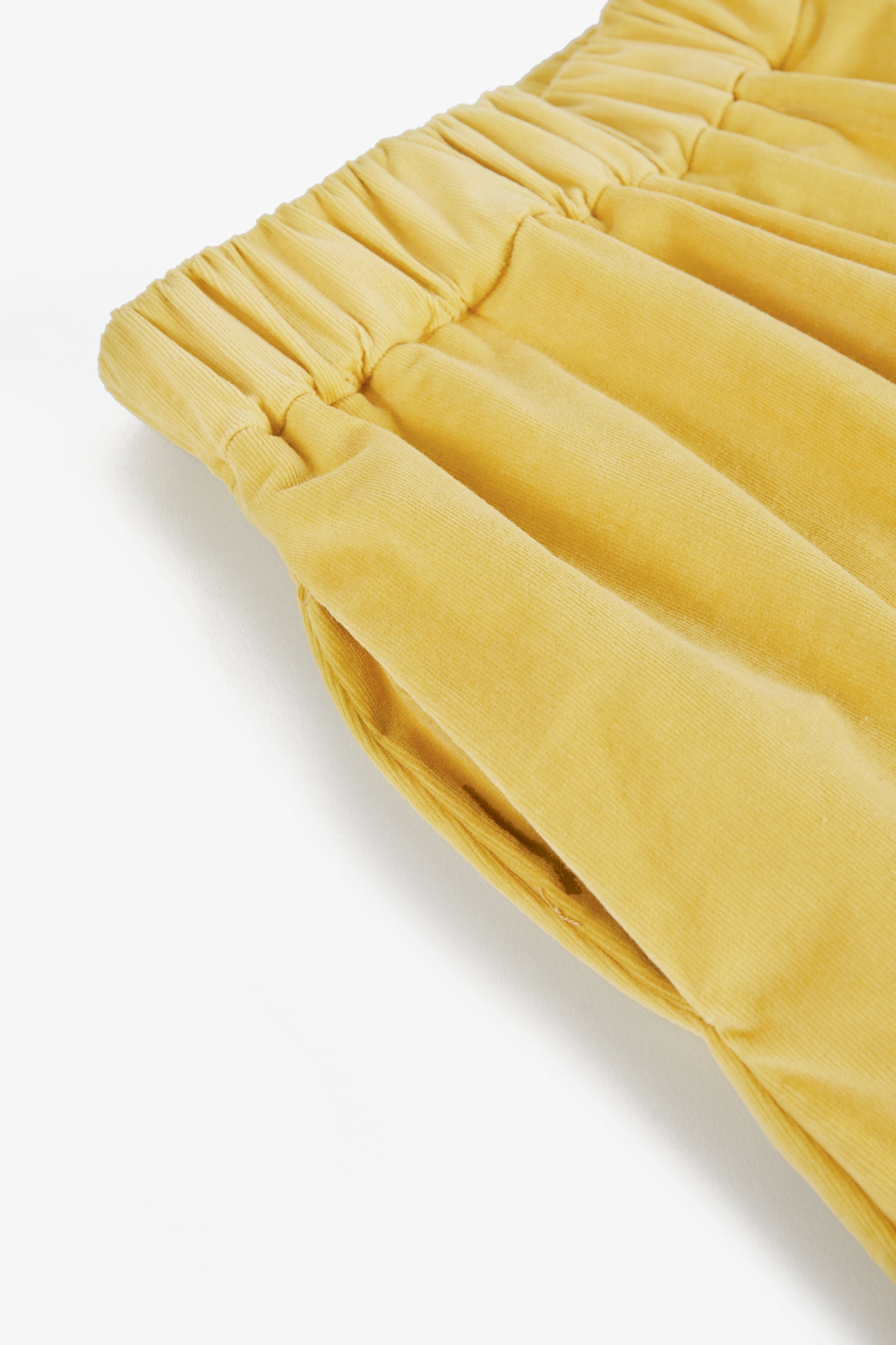 Cropped asymmetric trousers, side pockets, elastic waist