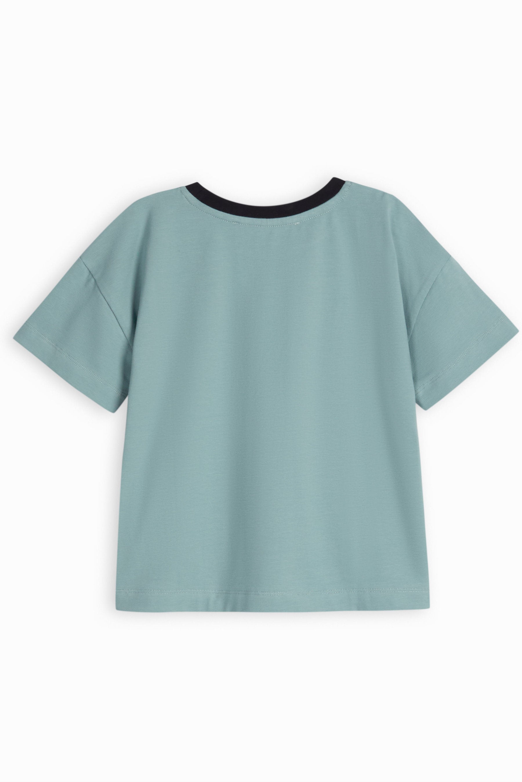 Short sleeved, relaxed fit t-shirt with print and contrasted collar