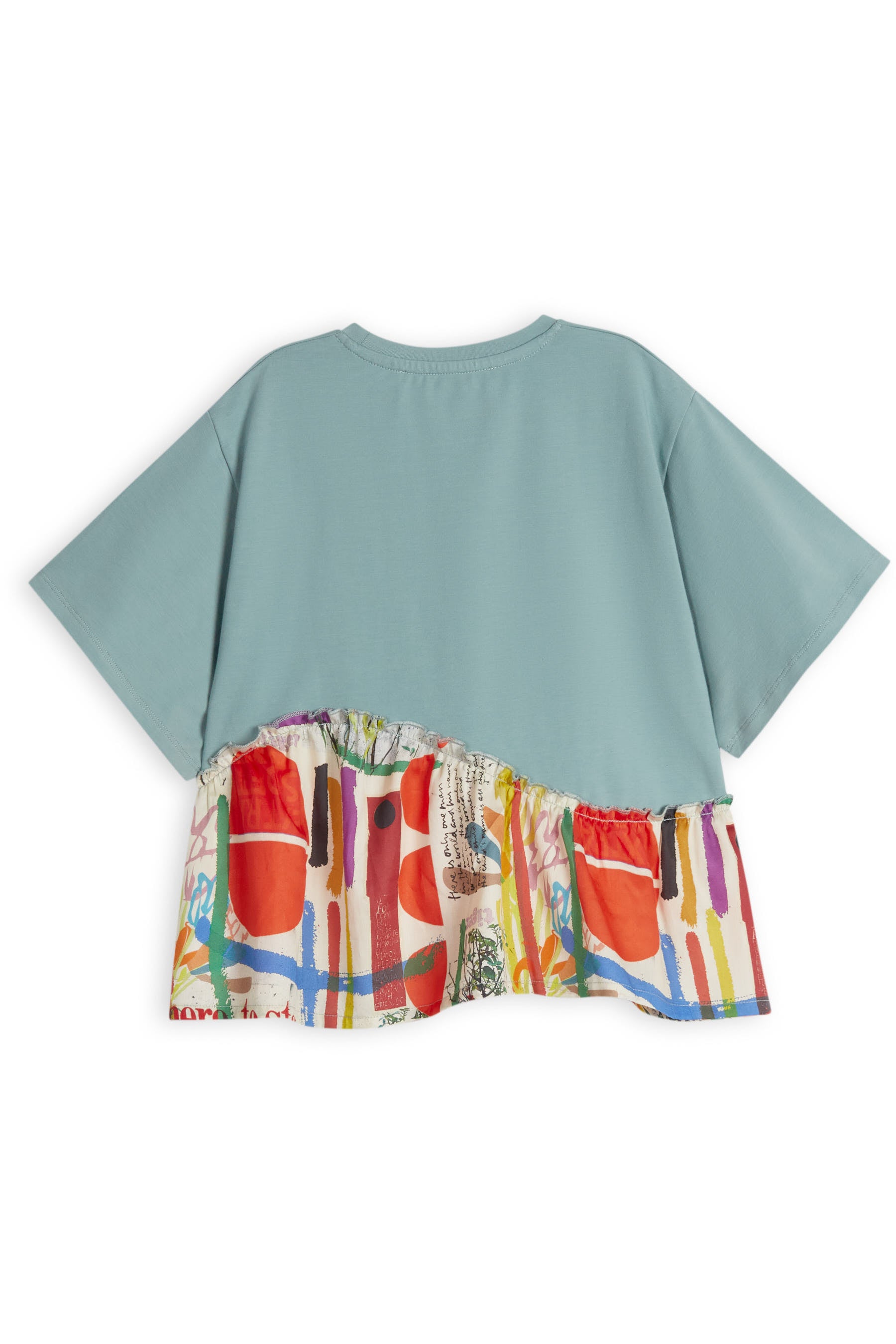 Short sleeved t-shirt with contrasted gathered bottom and small mascot embroidery MAIN 95% CO 5% EA OTHER 100% CO