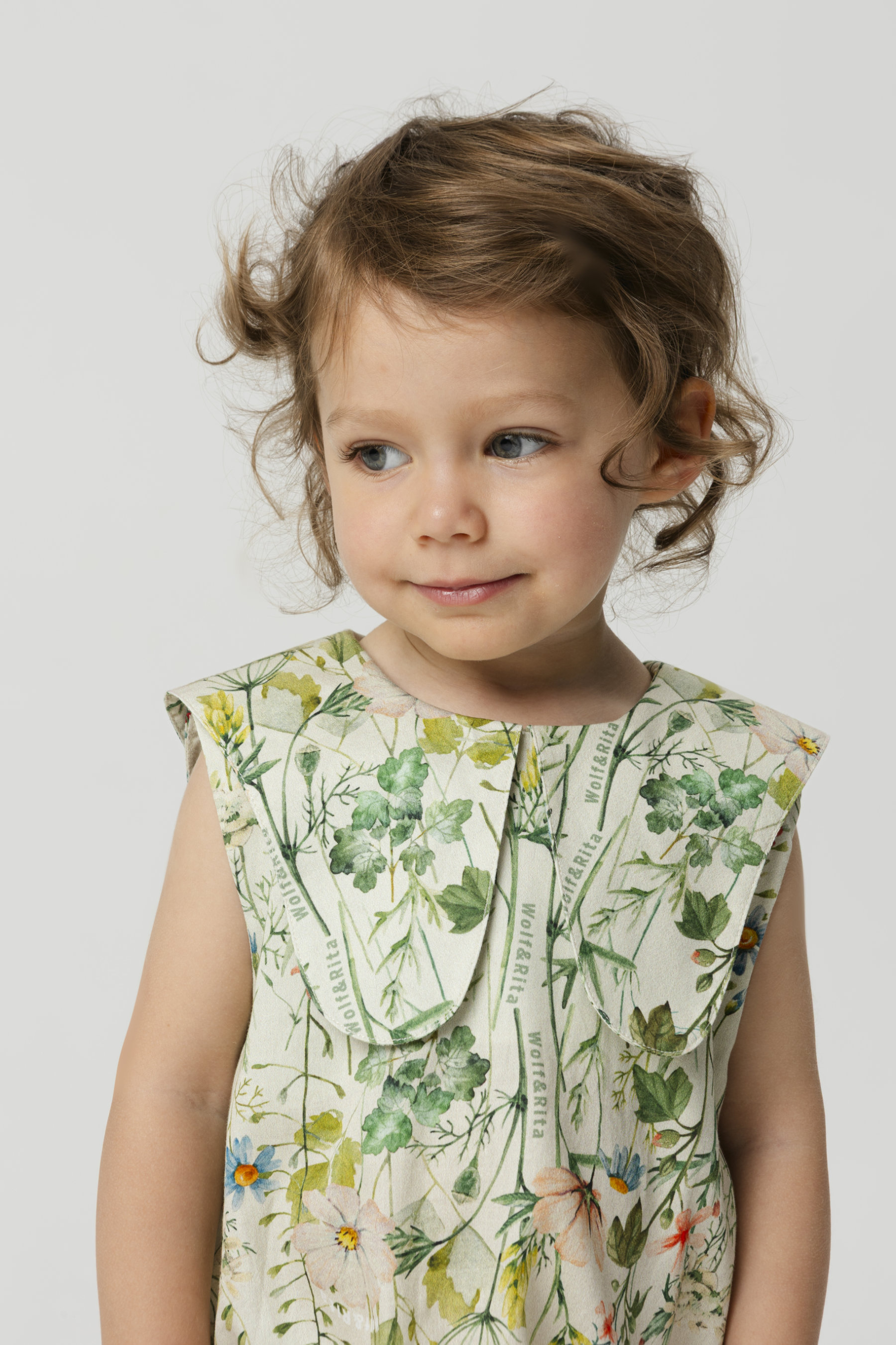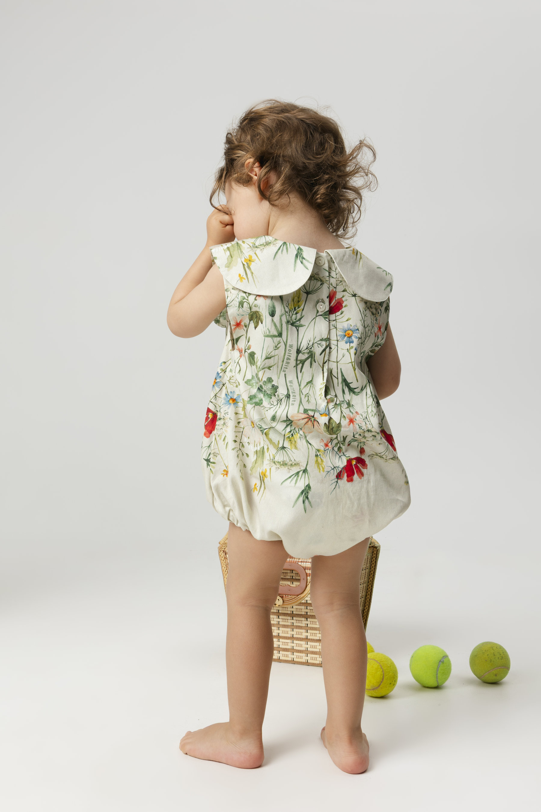 Sleeveless jumpsuit with pointed collar, back buttons and snap buttons between the legs