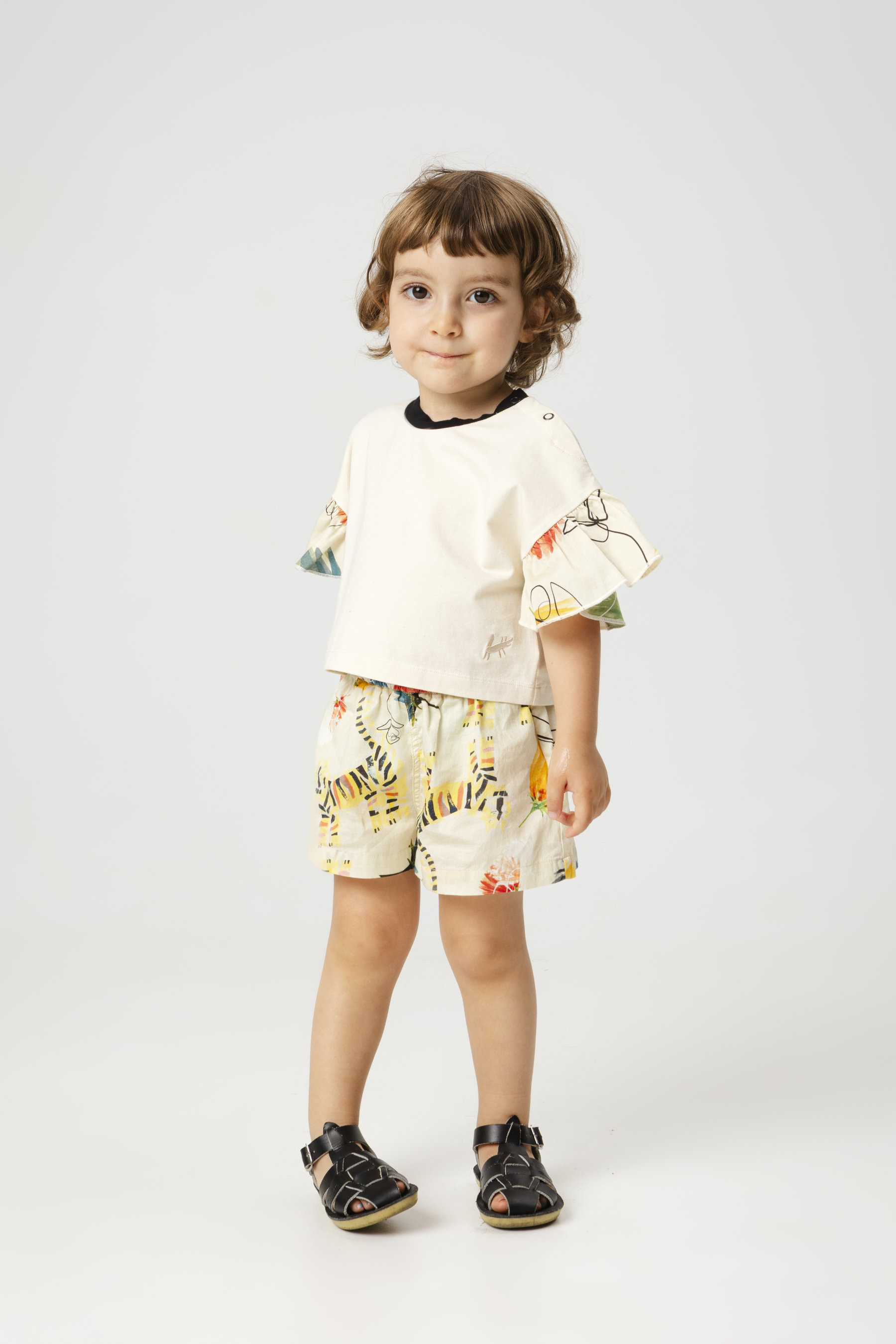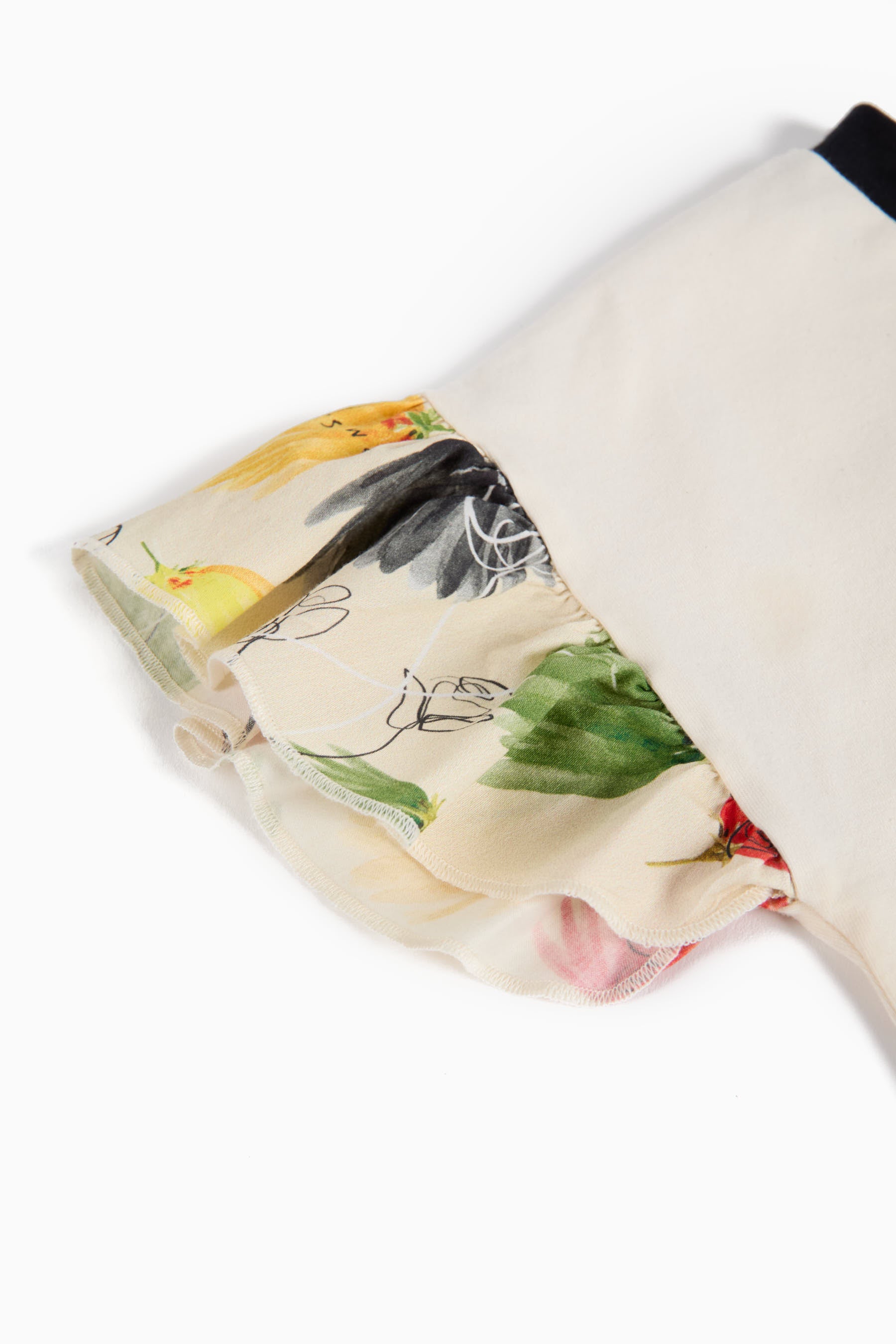 T-shirt with contrasted sleeves, contrasted collar and small mascot embroidery