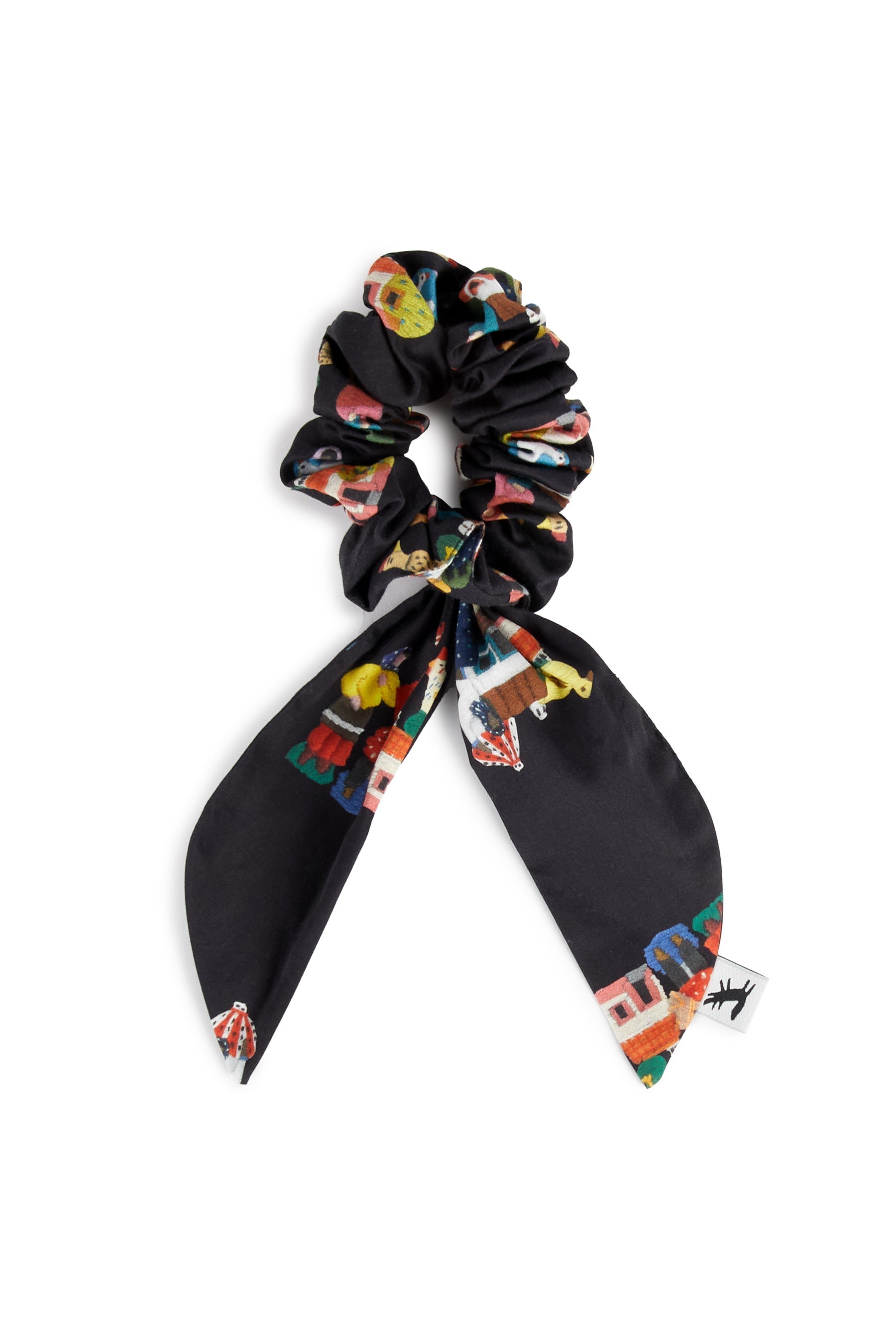 Printed fabric bow scrunchie
