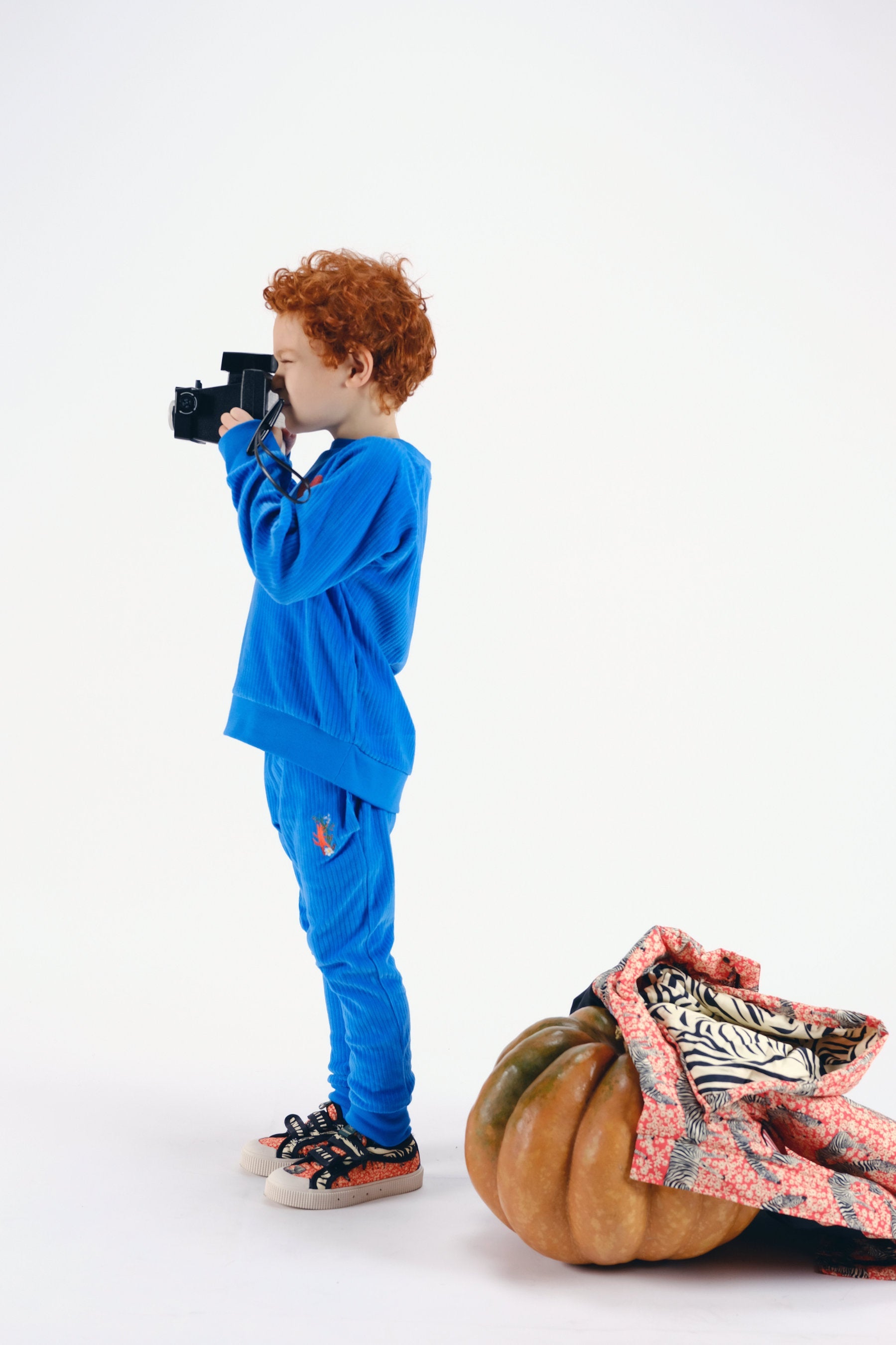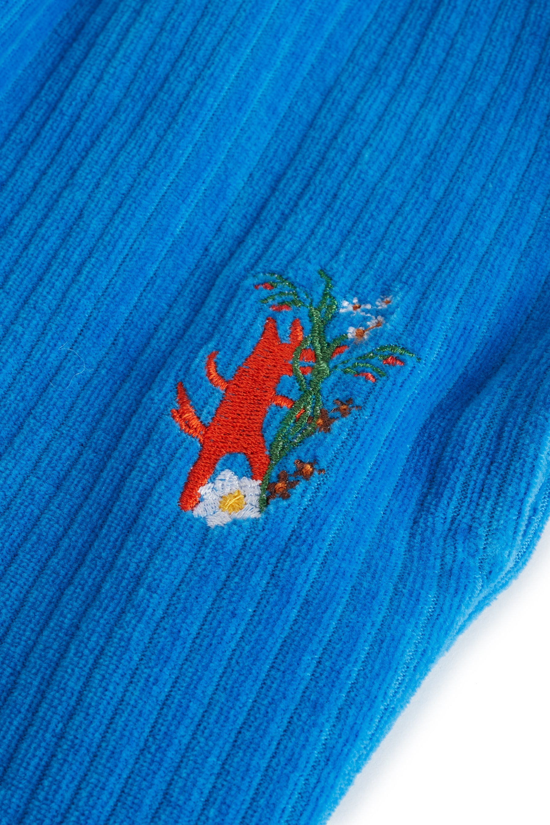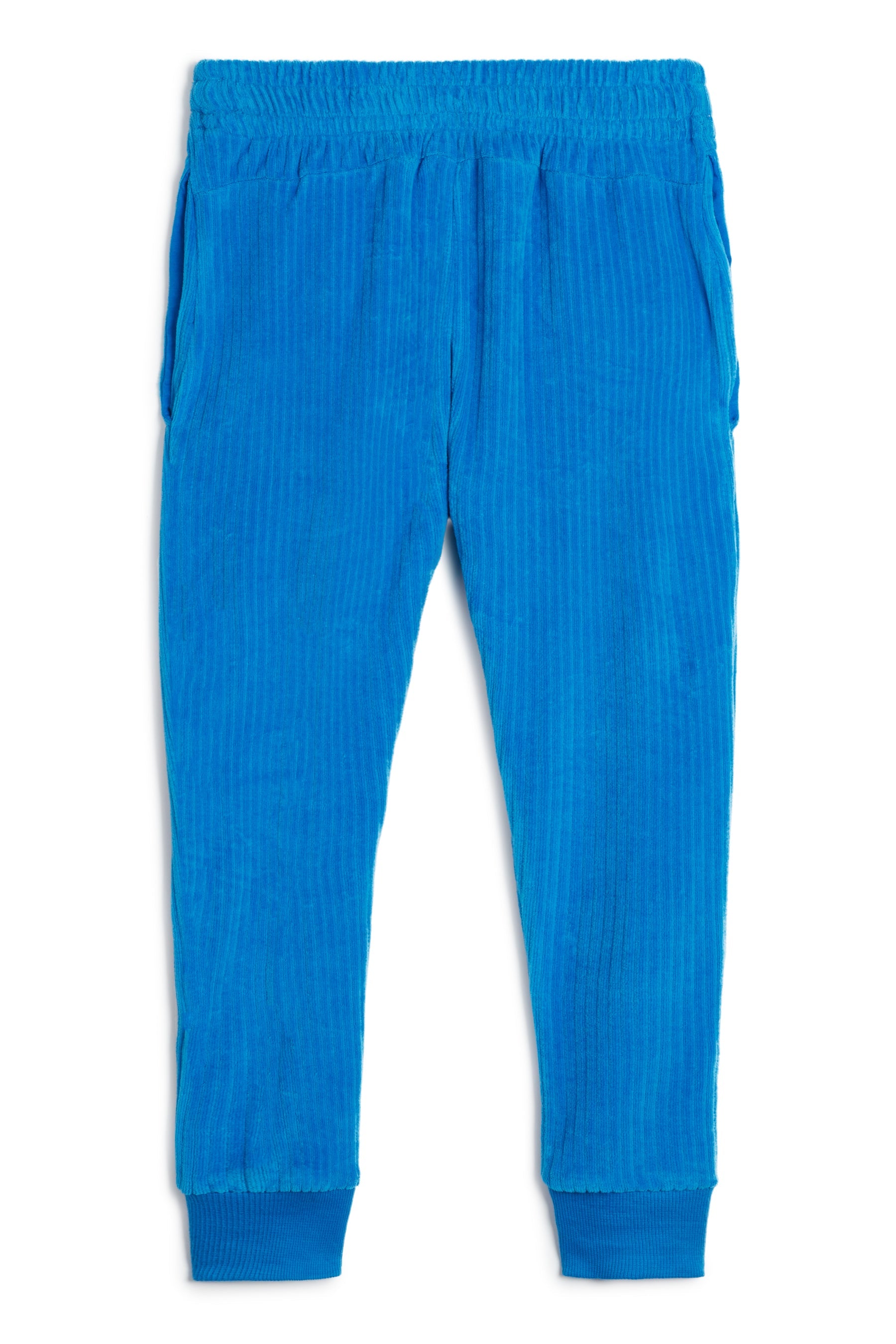 Corduroy relaxed fit pants with side pockets, ribbed cuffs, adjustable waist and small embroidery
