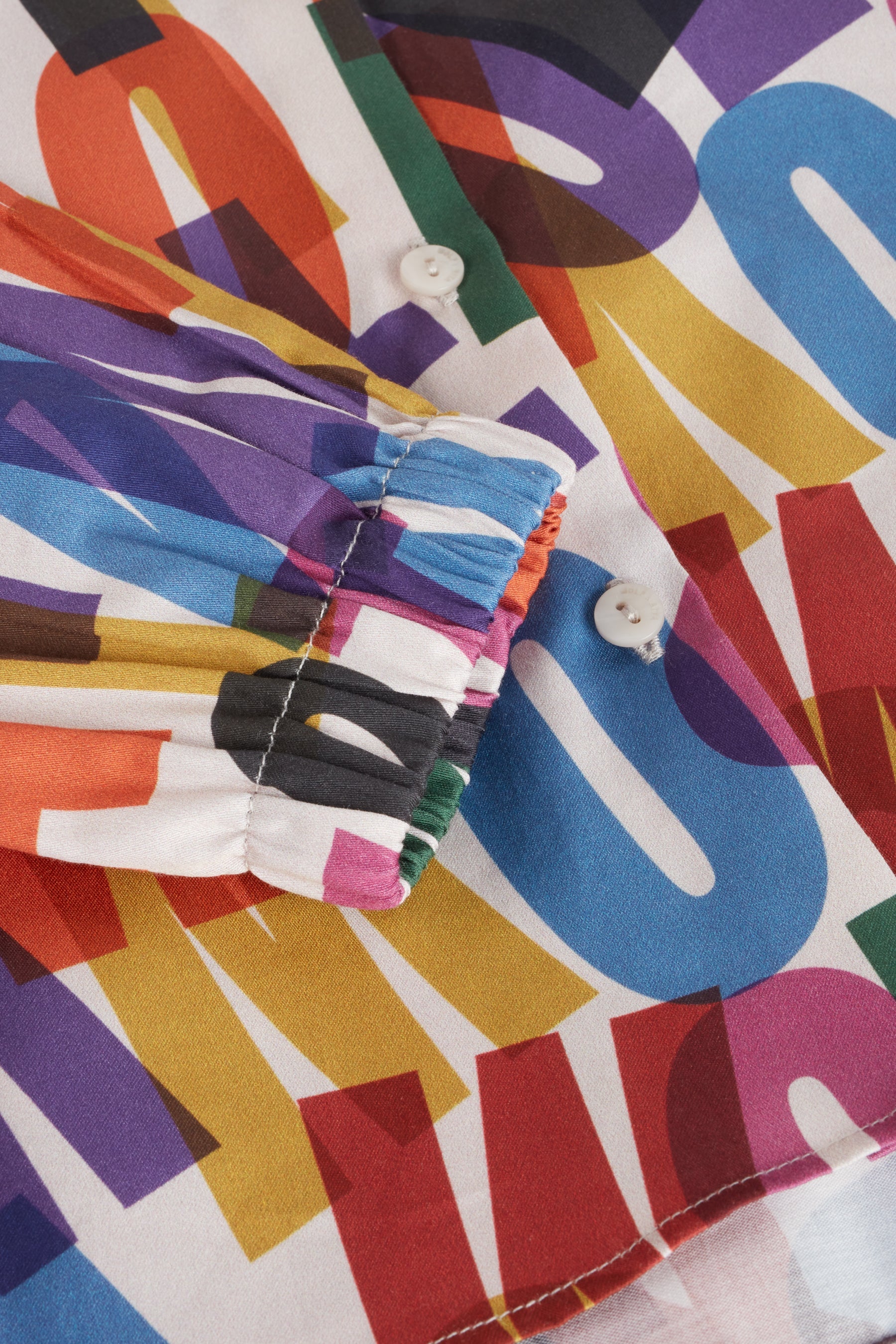 Long sleeved blouse, with front buttons, frills on back and elasticated cuffs
