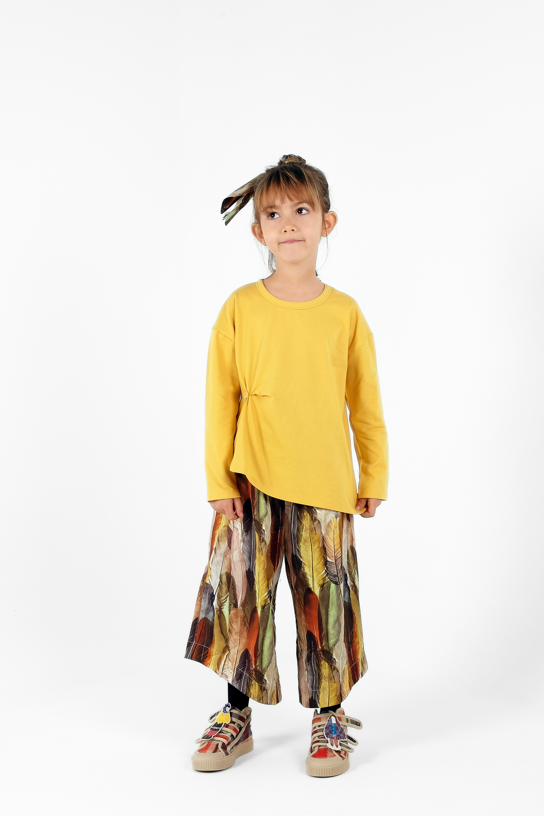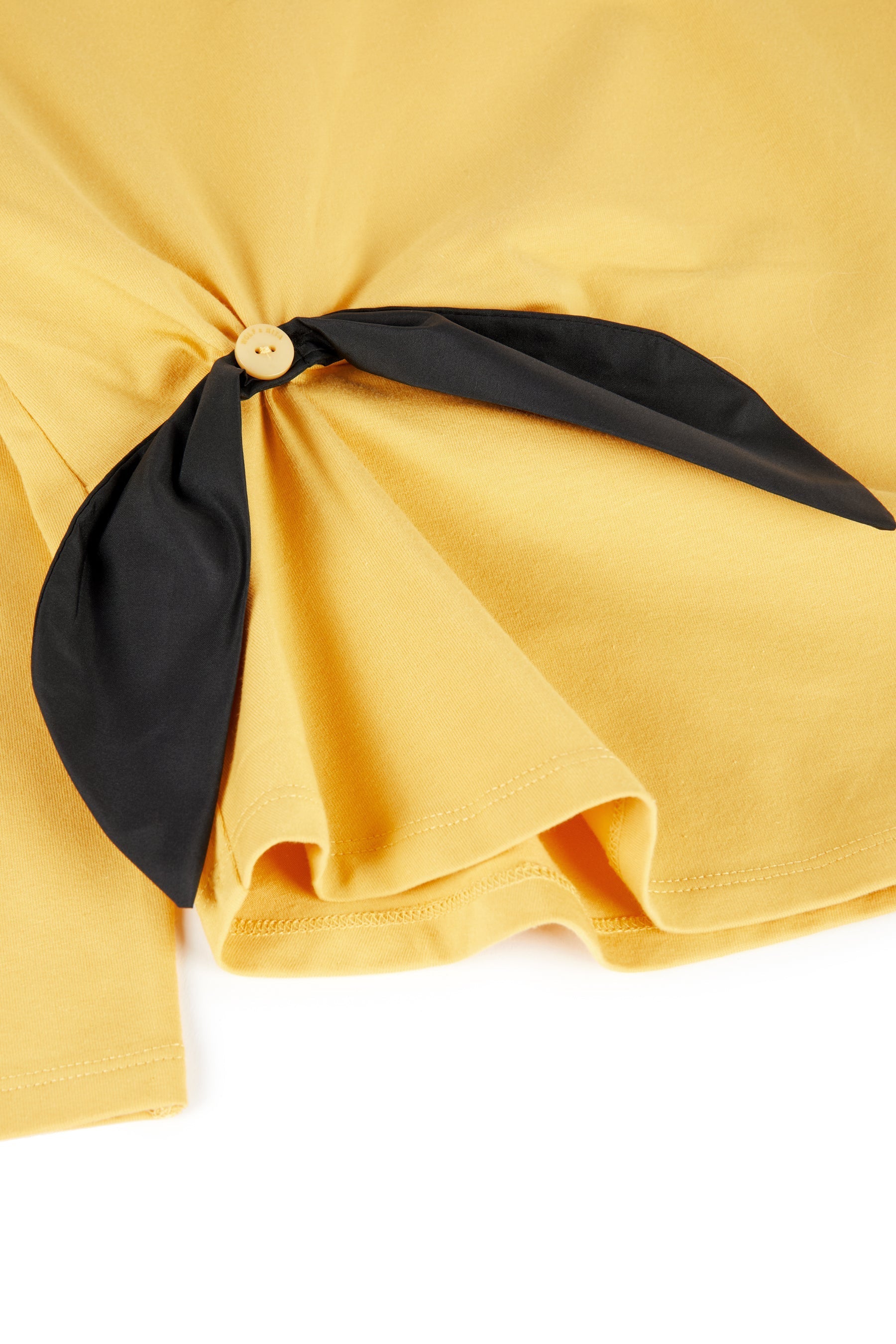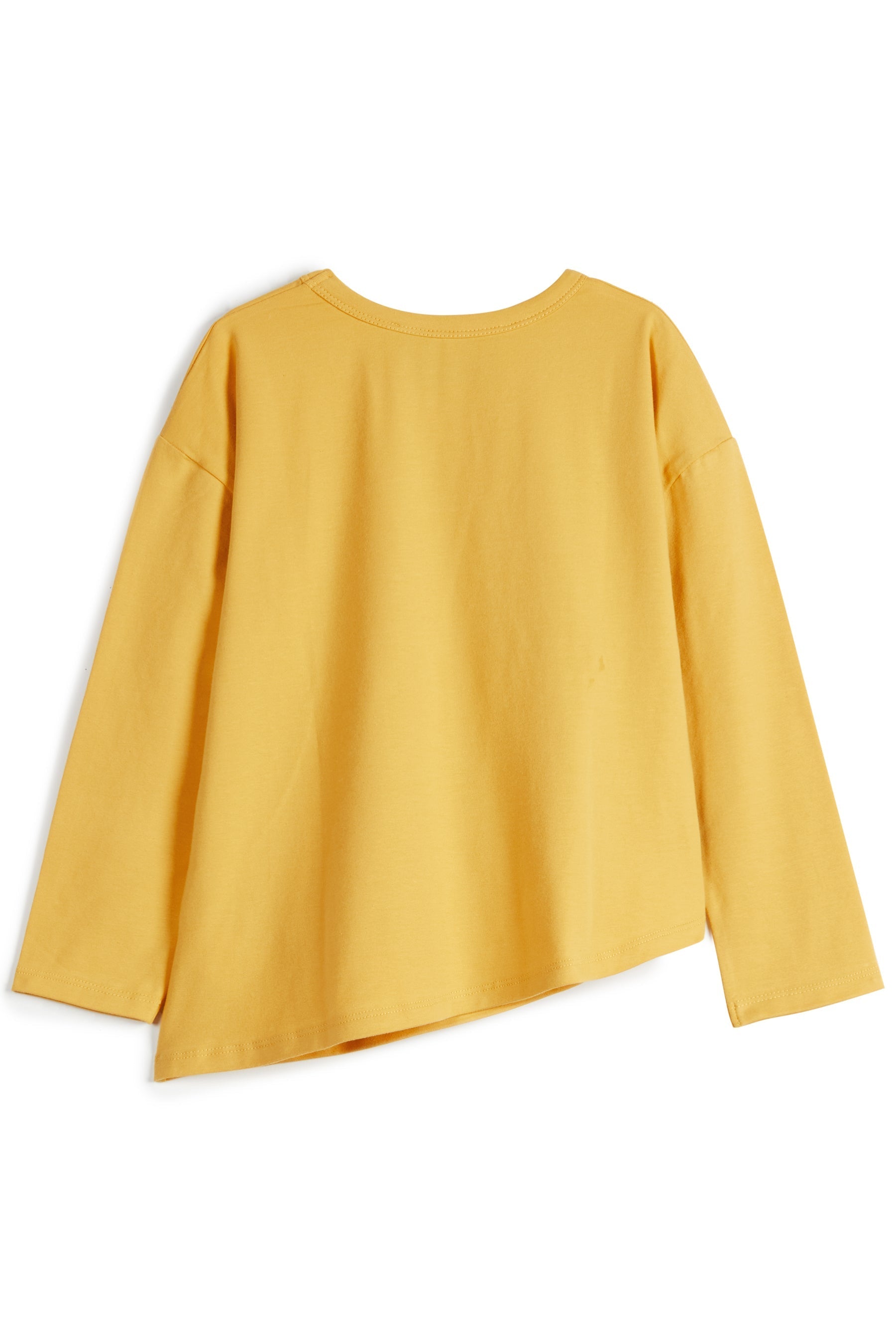 Long sleeved t-shirt with asymmetric hem and detachable, interchangeable bows (with button)