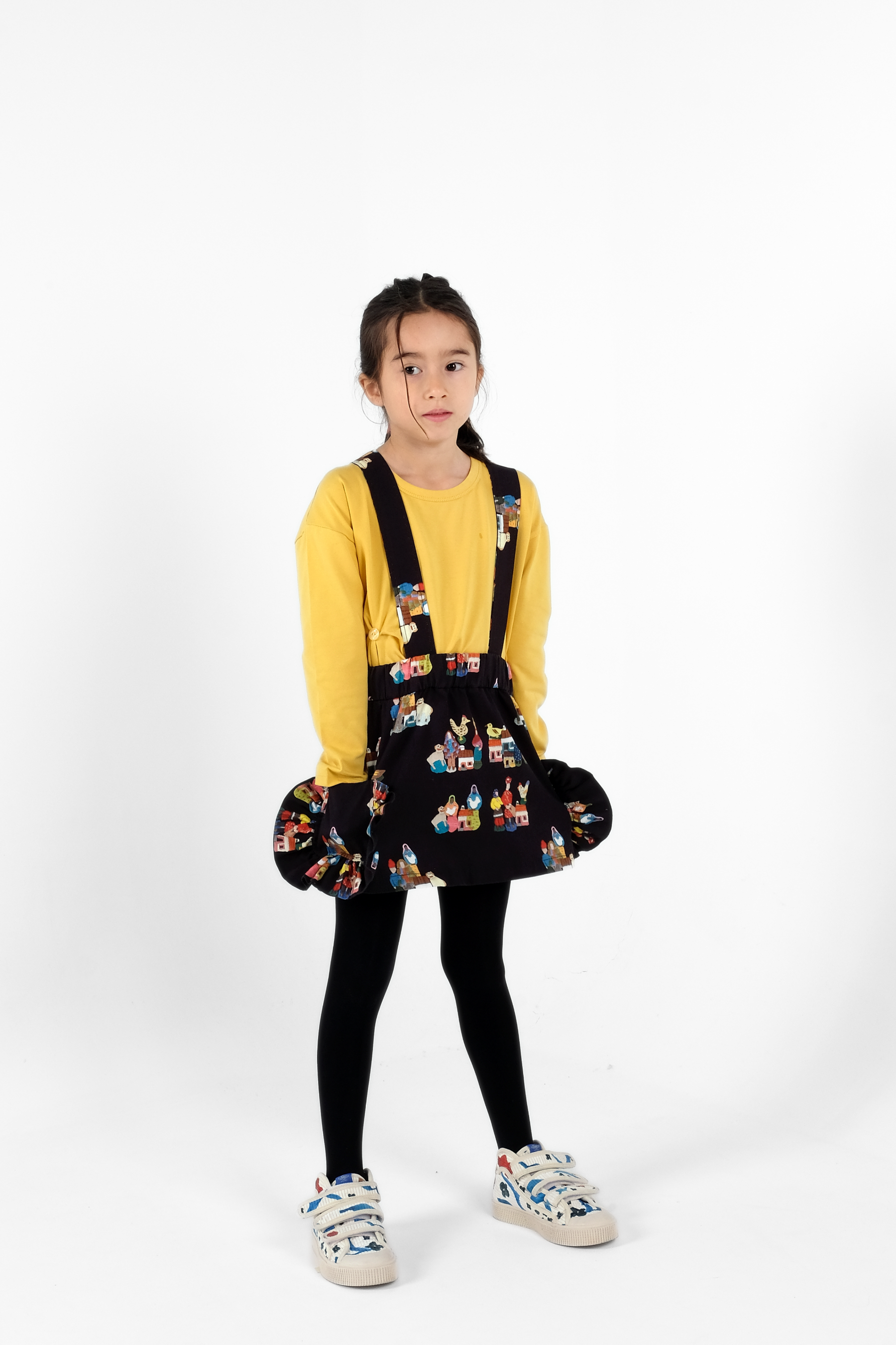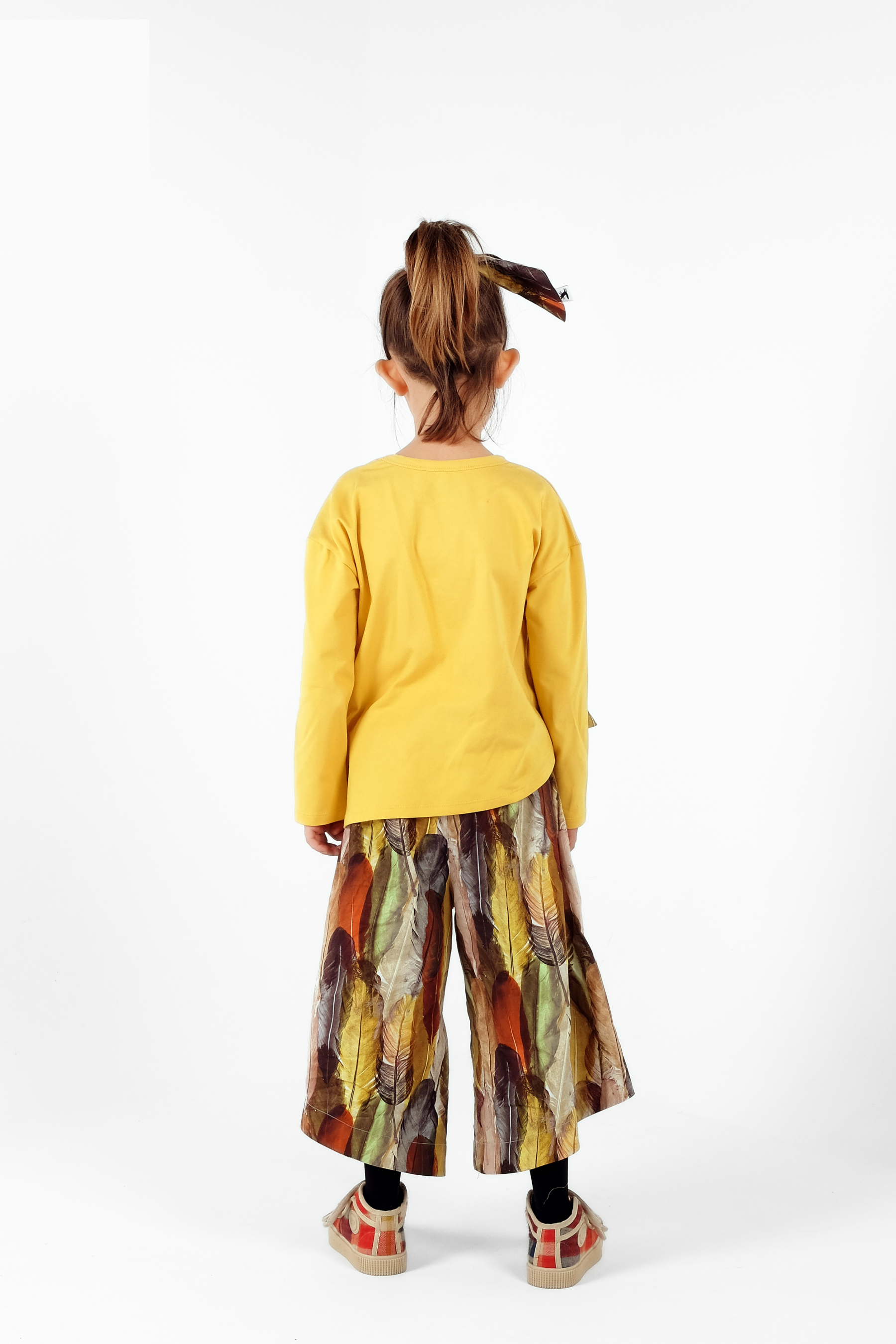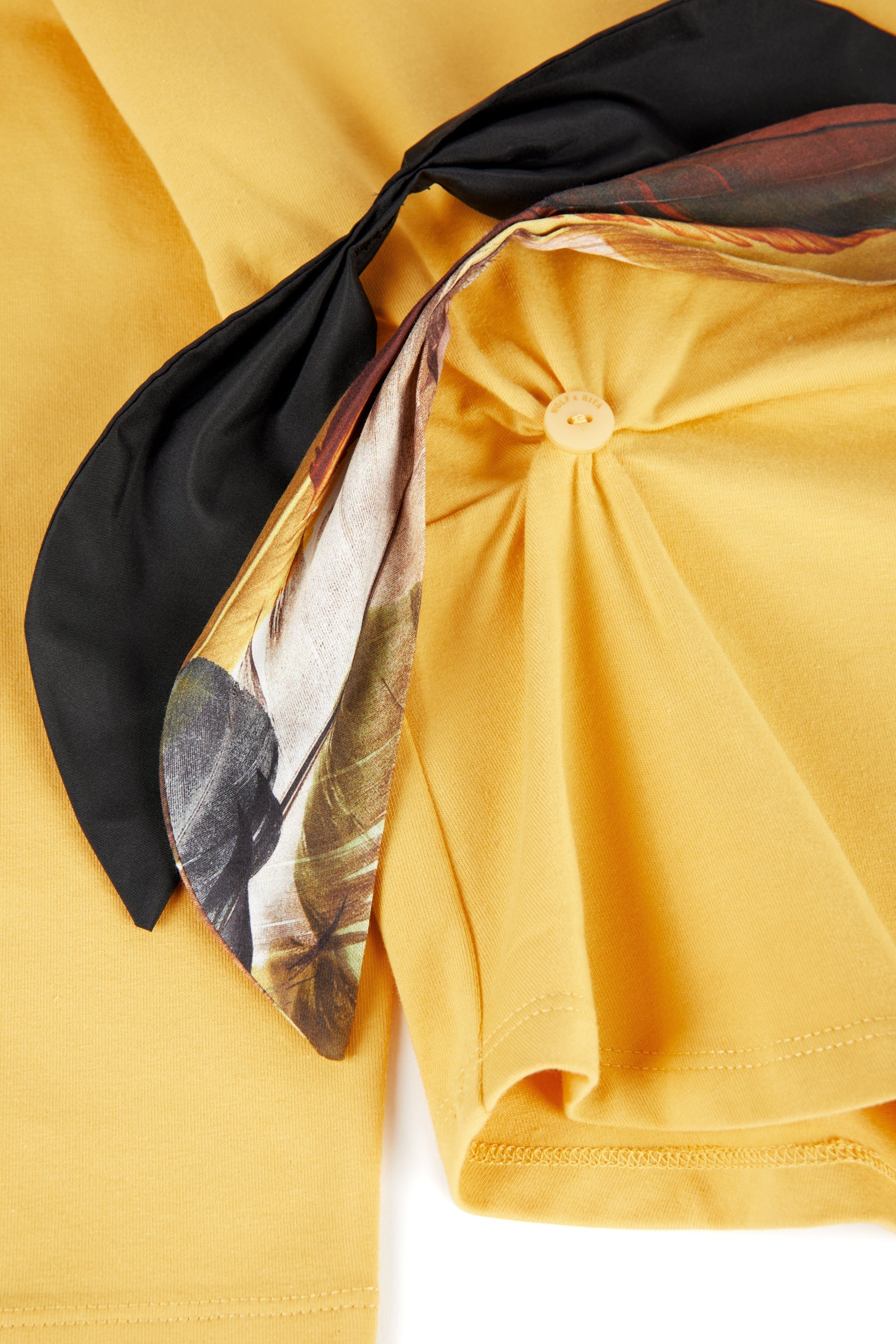 Long sleeved t-shirt with asymmetric hem and detachable, interchangeable bows (with button)