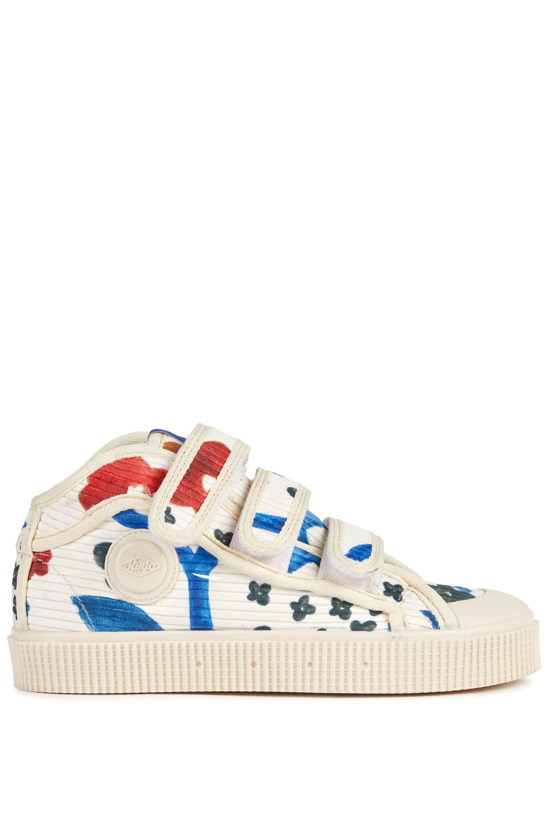 High top trainers, velcro on sizes up to 34, laces on sizes 35 and bigger (two different colours)