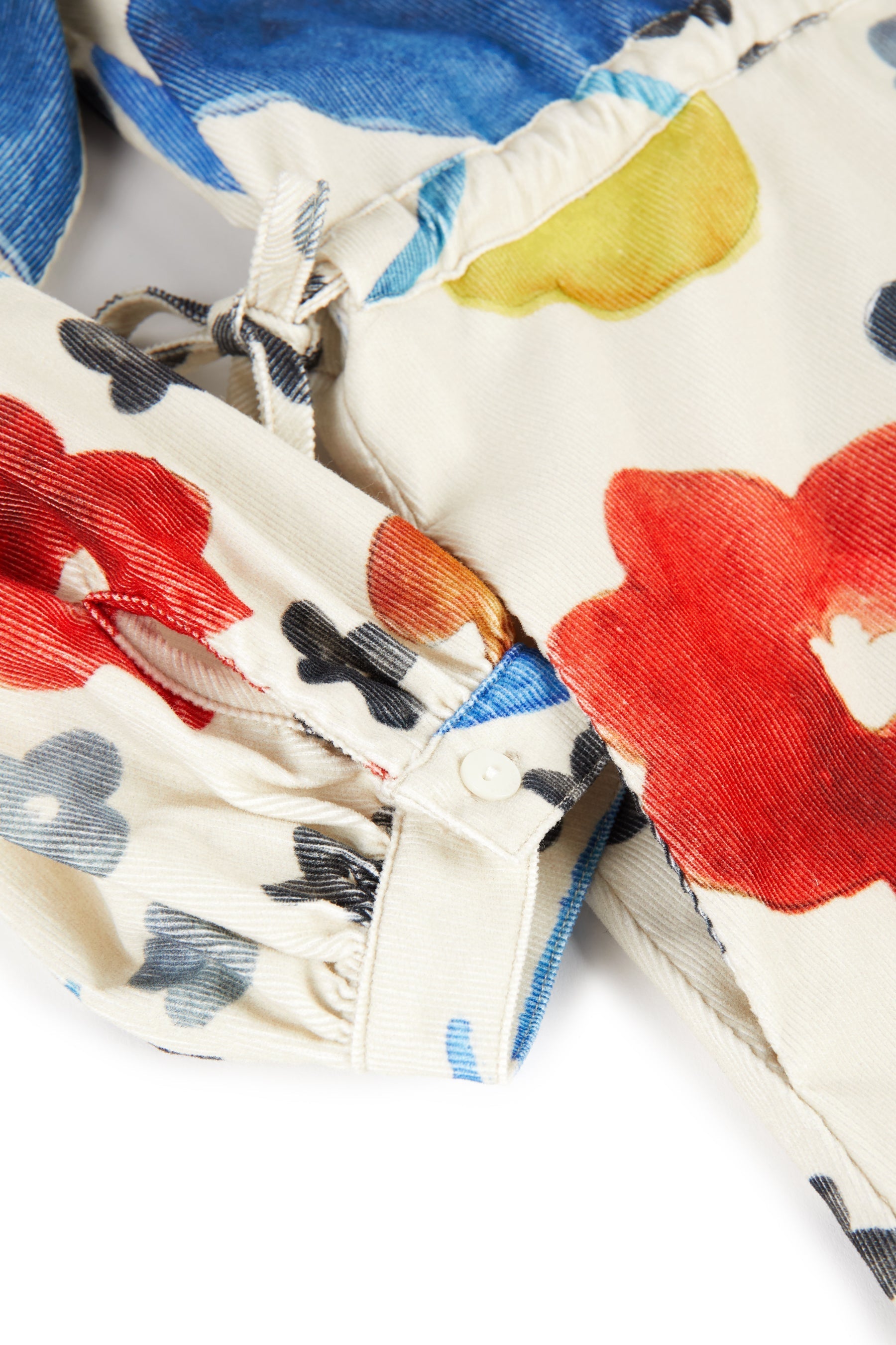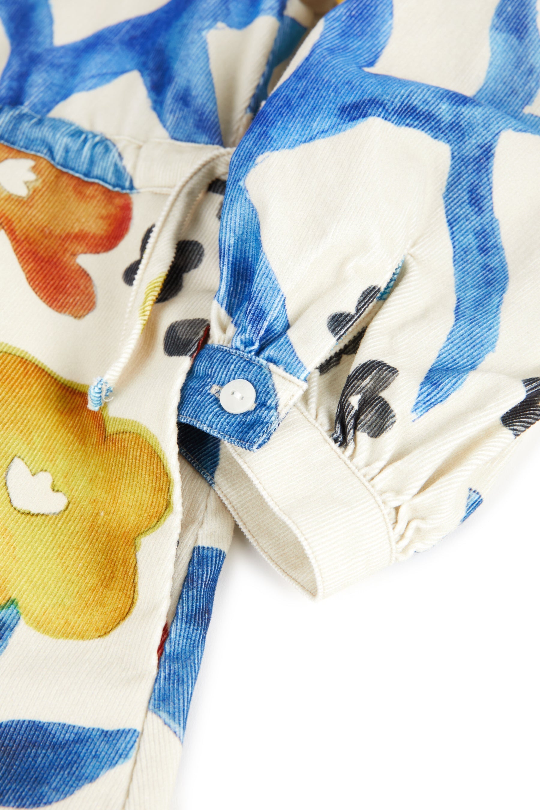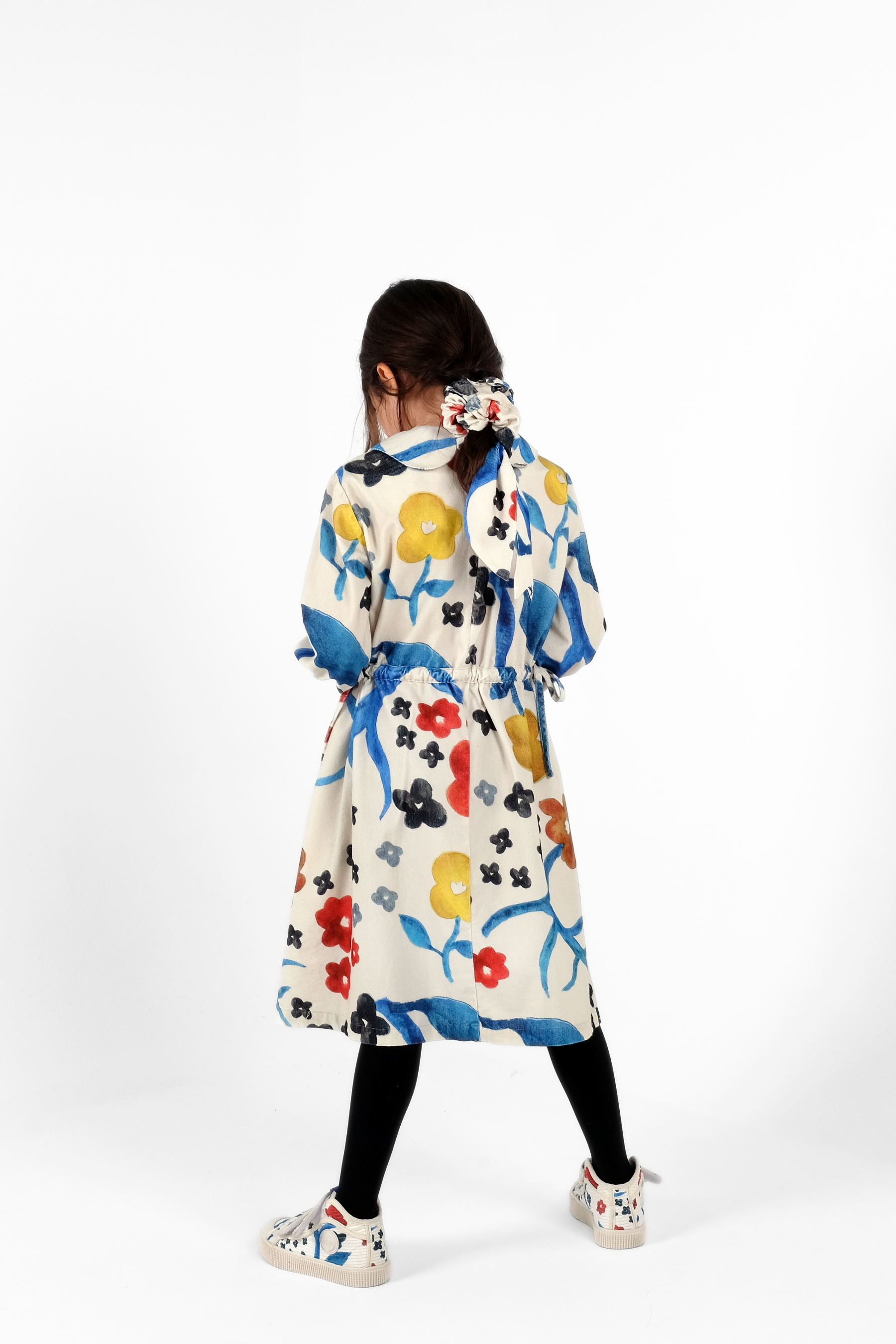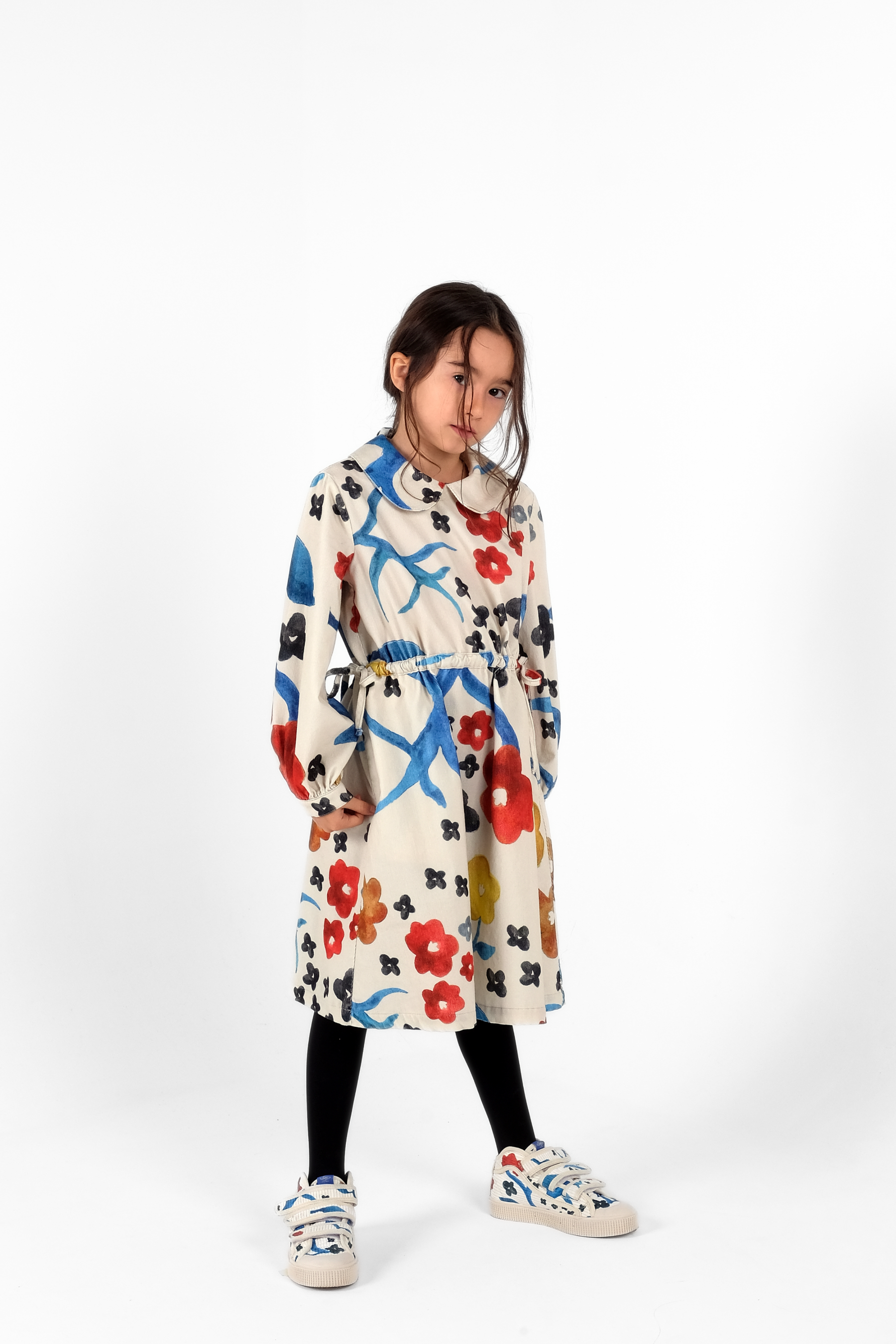 Long sleeved dress with waist adjustable straps, round collar and back zipper