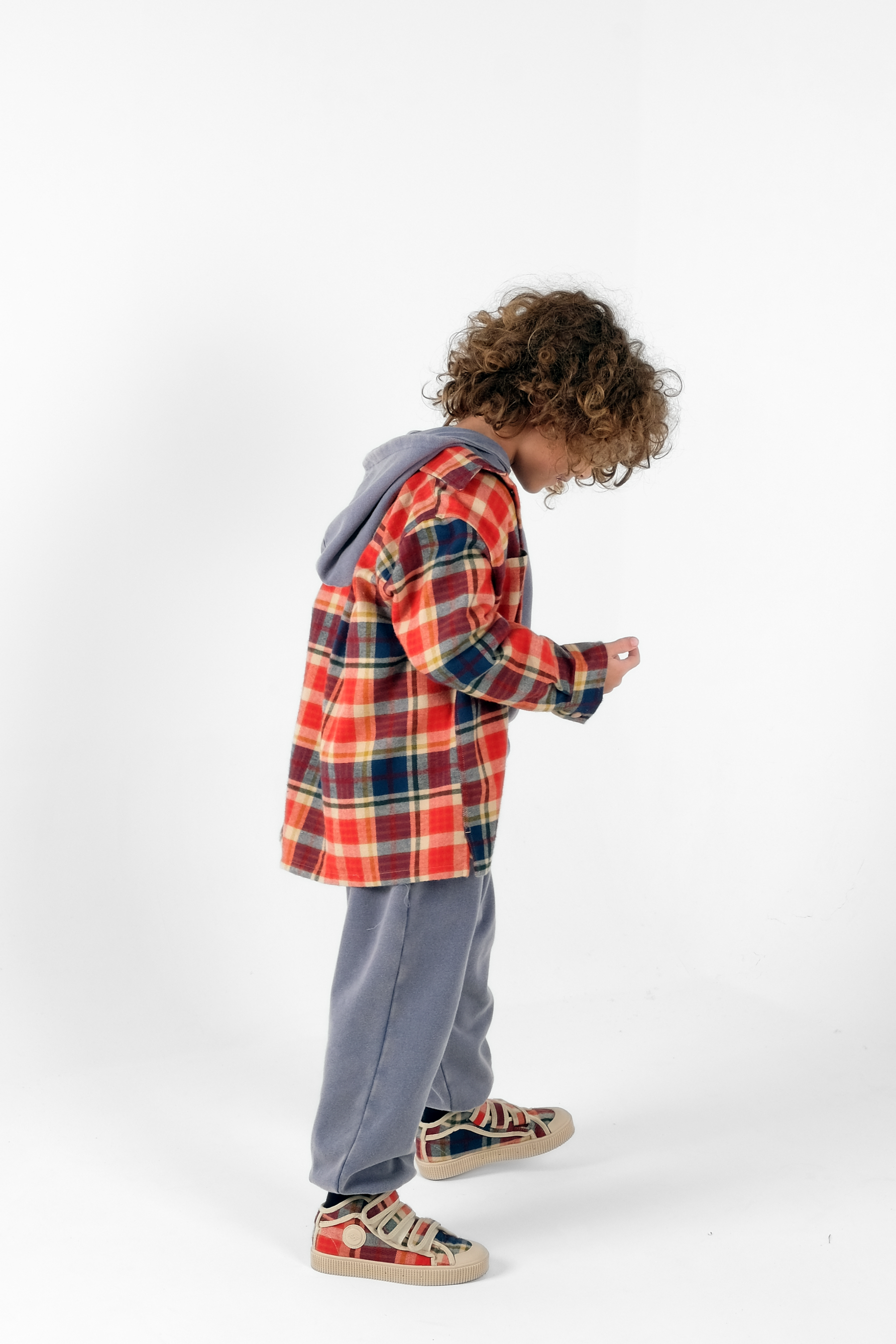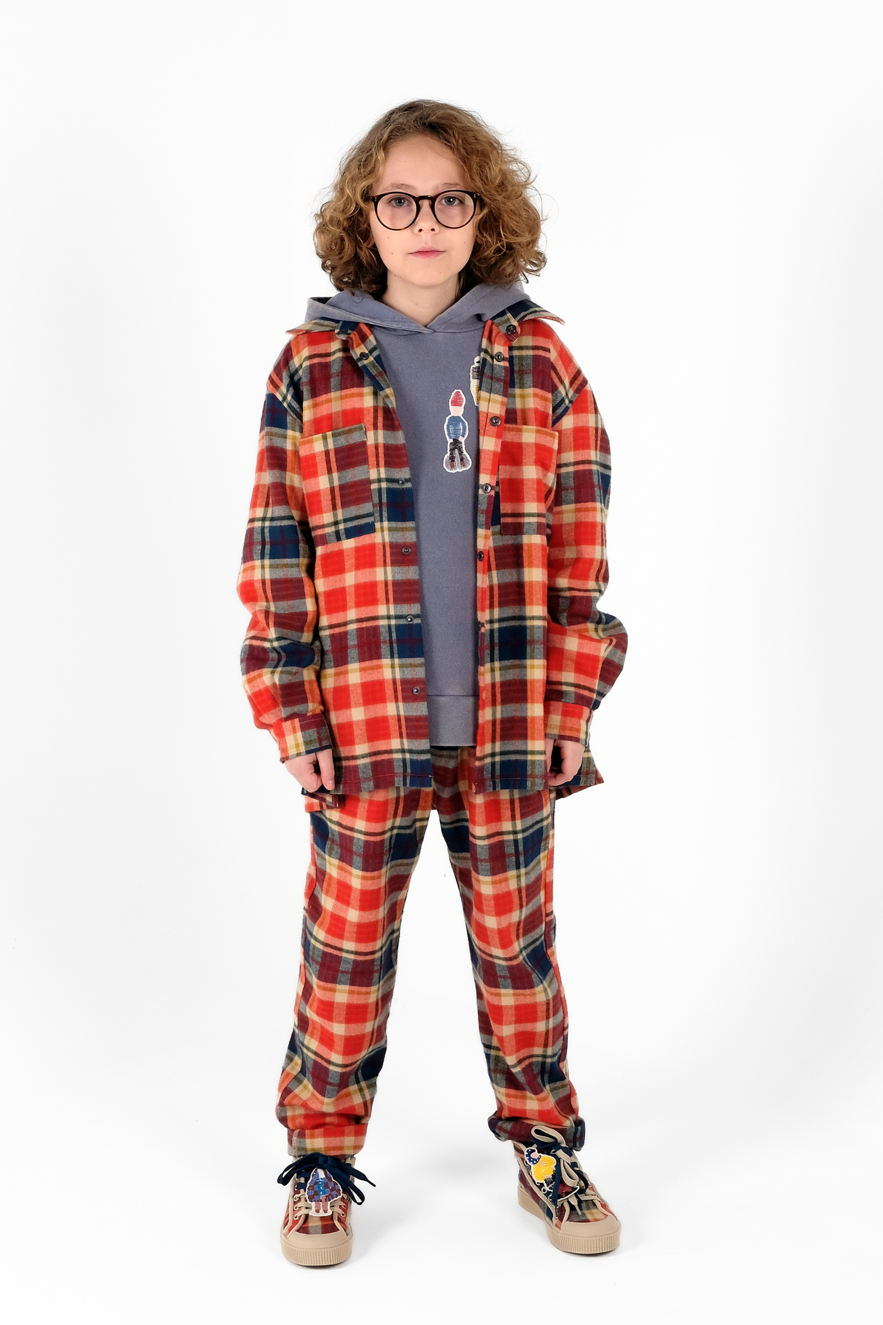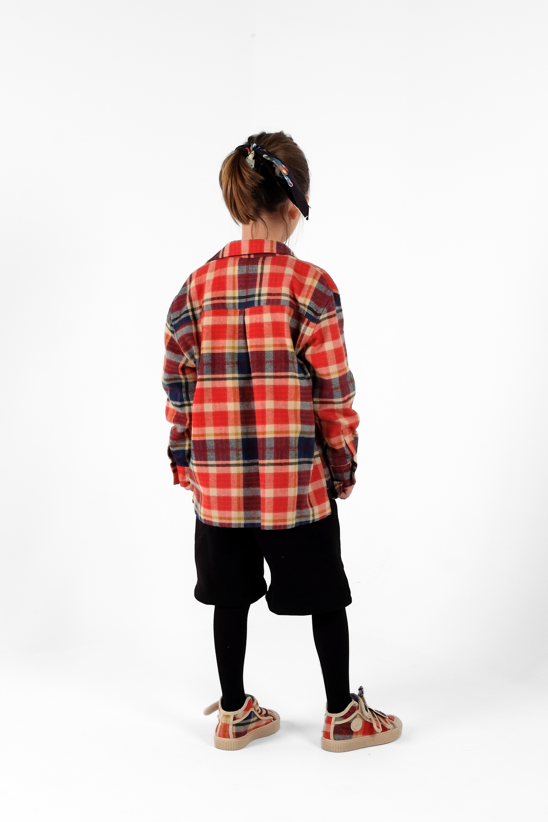 Long sleeved button-up shirt, loose fit, with front pockets, press buttons and center back pleat