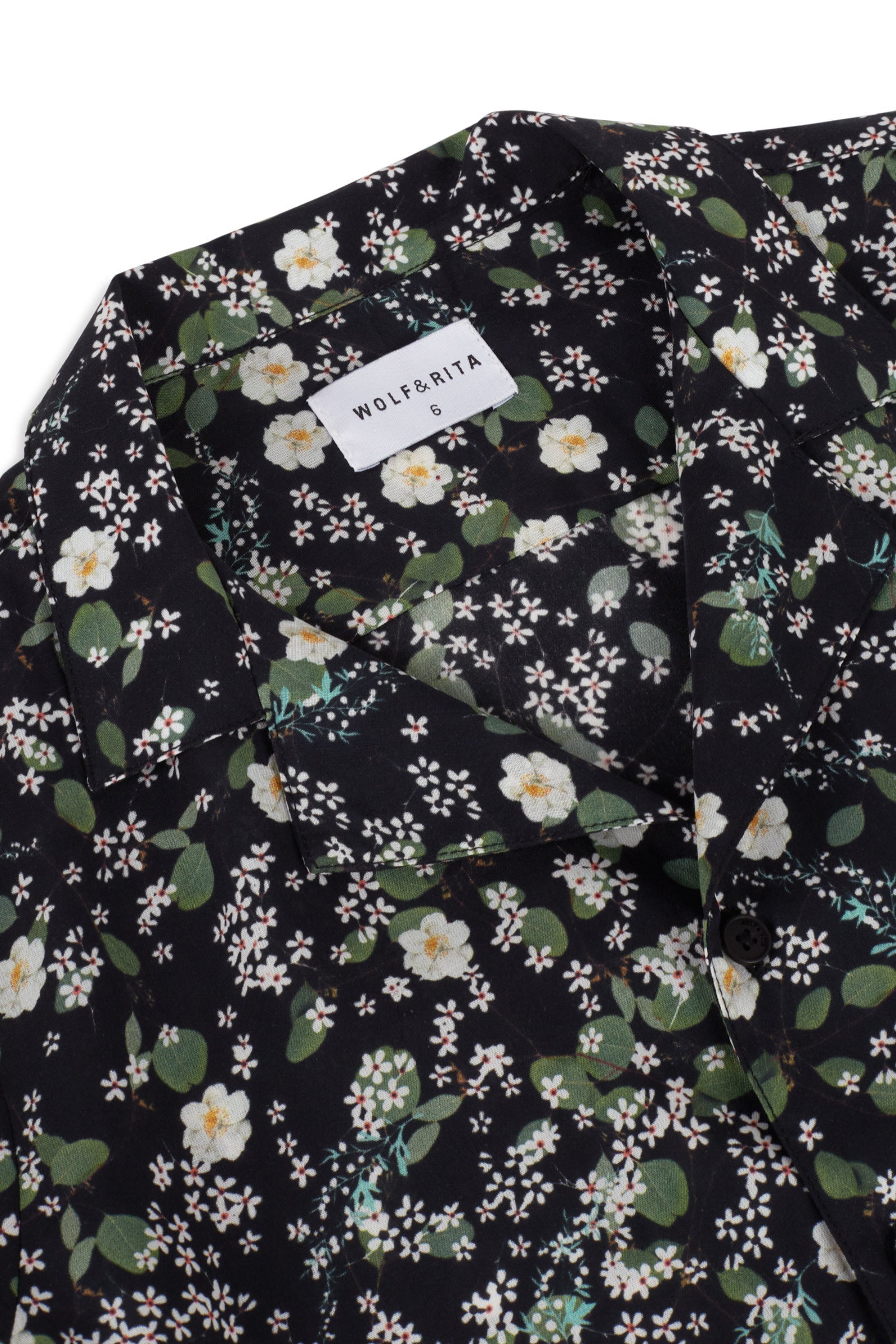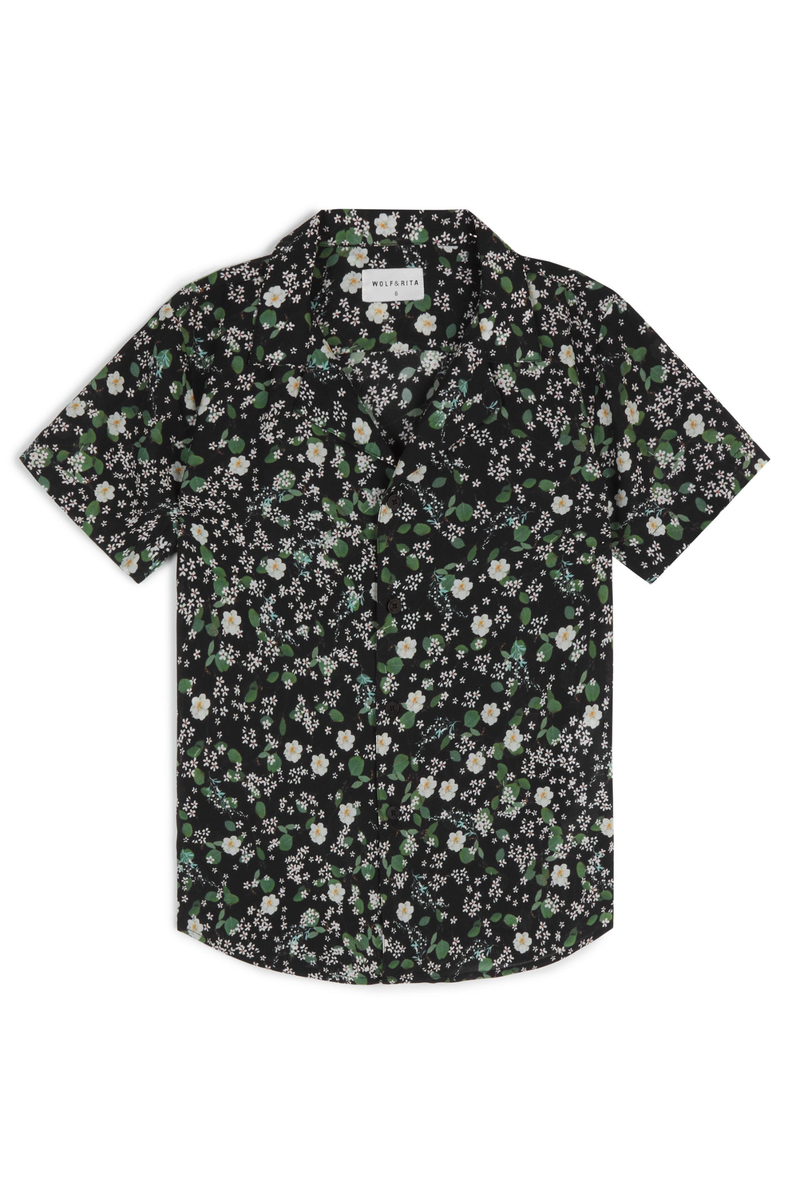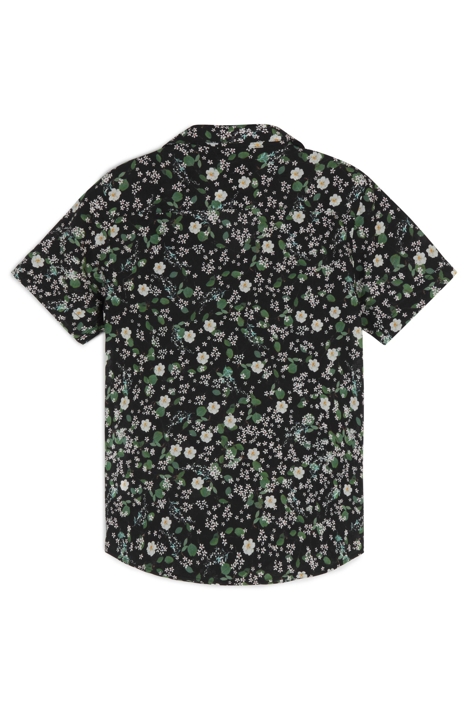 Short sleeved button-up shirt with front pocket and notched lapel