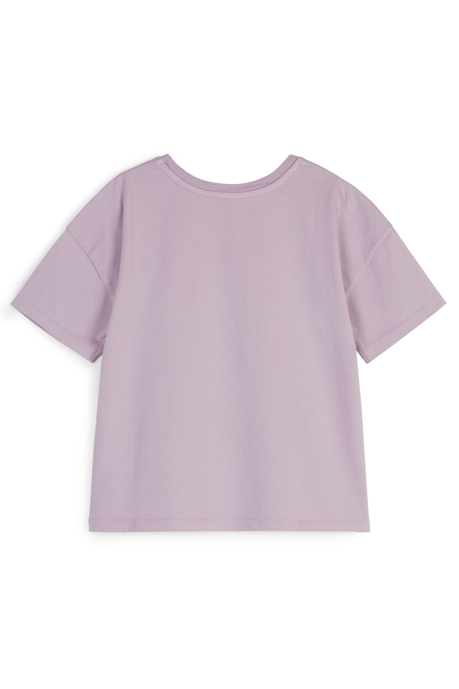 Garment dyed, loose fitting short sleeved t-shirt with print