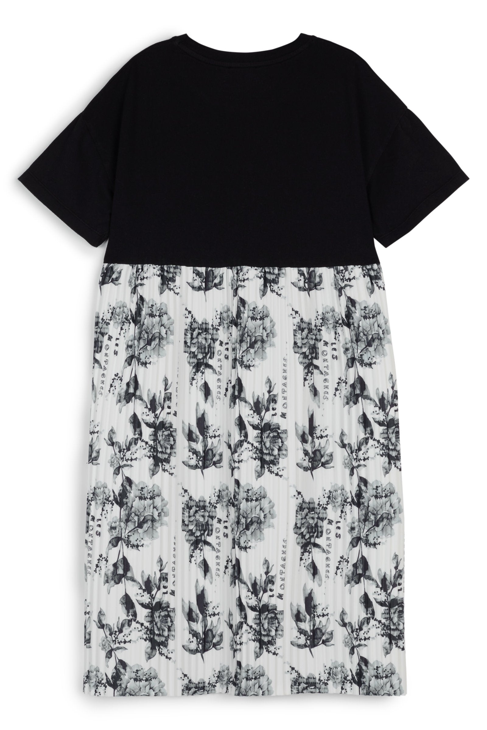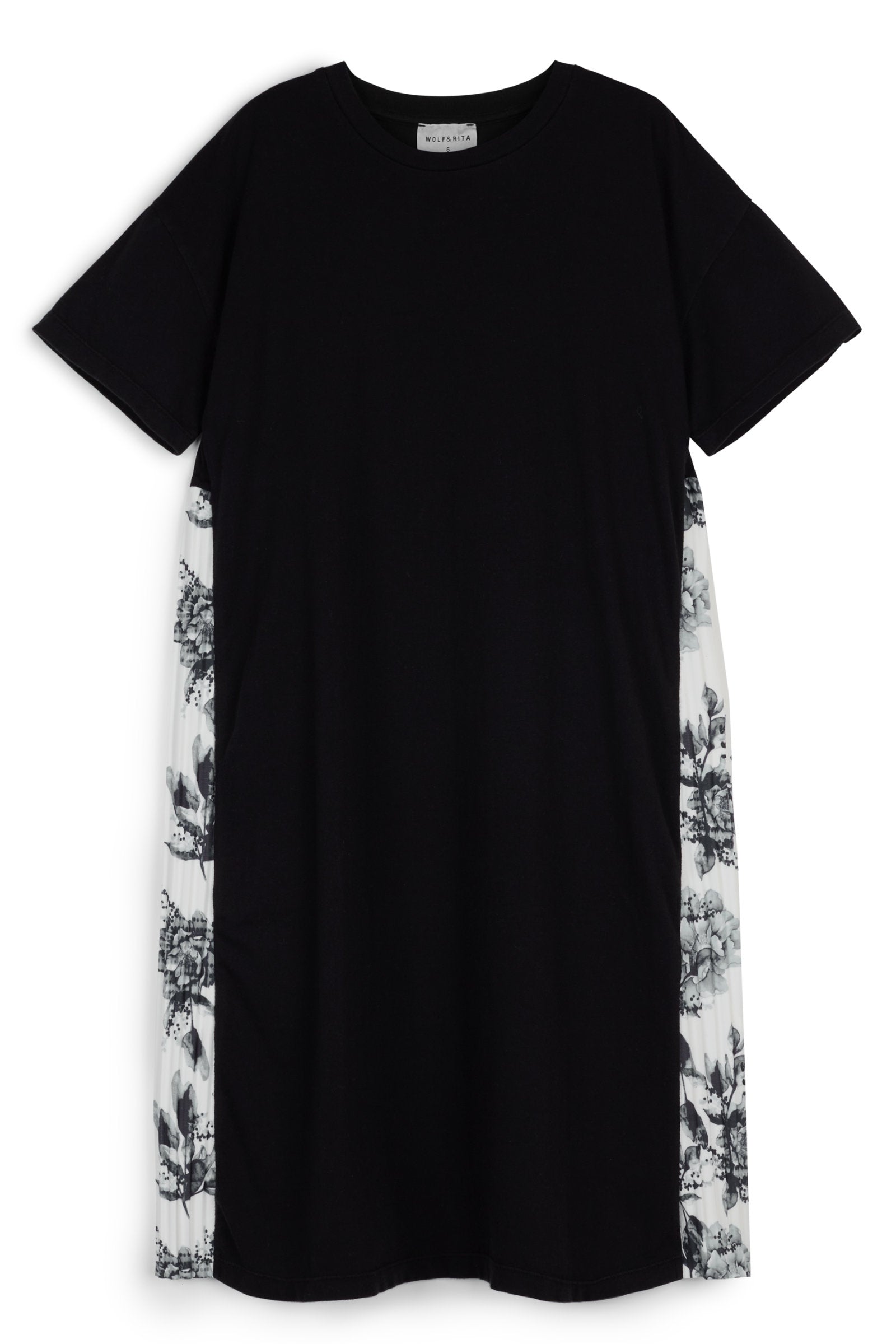 Garment dyed short sleeved t-shirt dress with contrasted pleated back