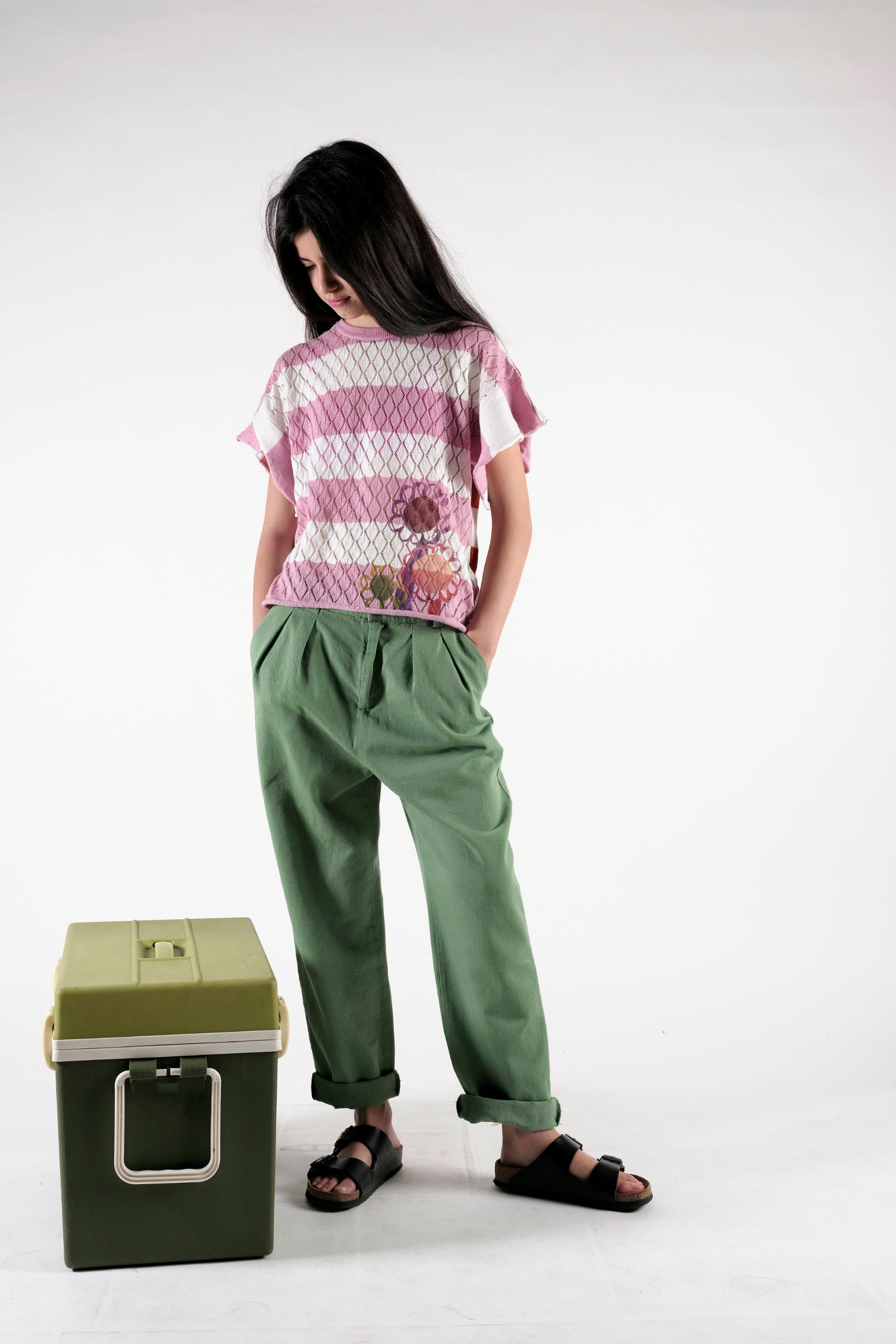 Pleated trousers with side pockets and adjustable waist