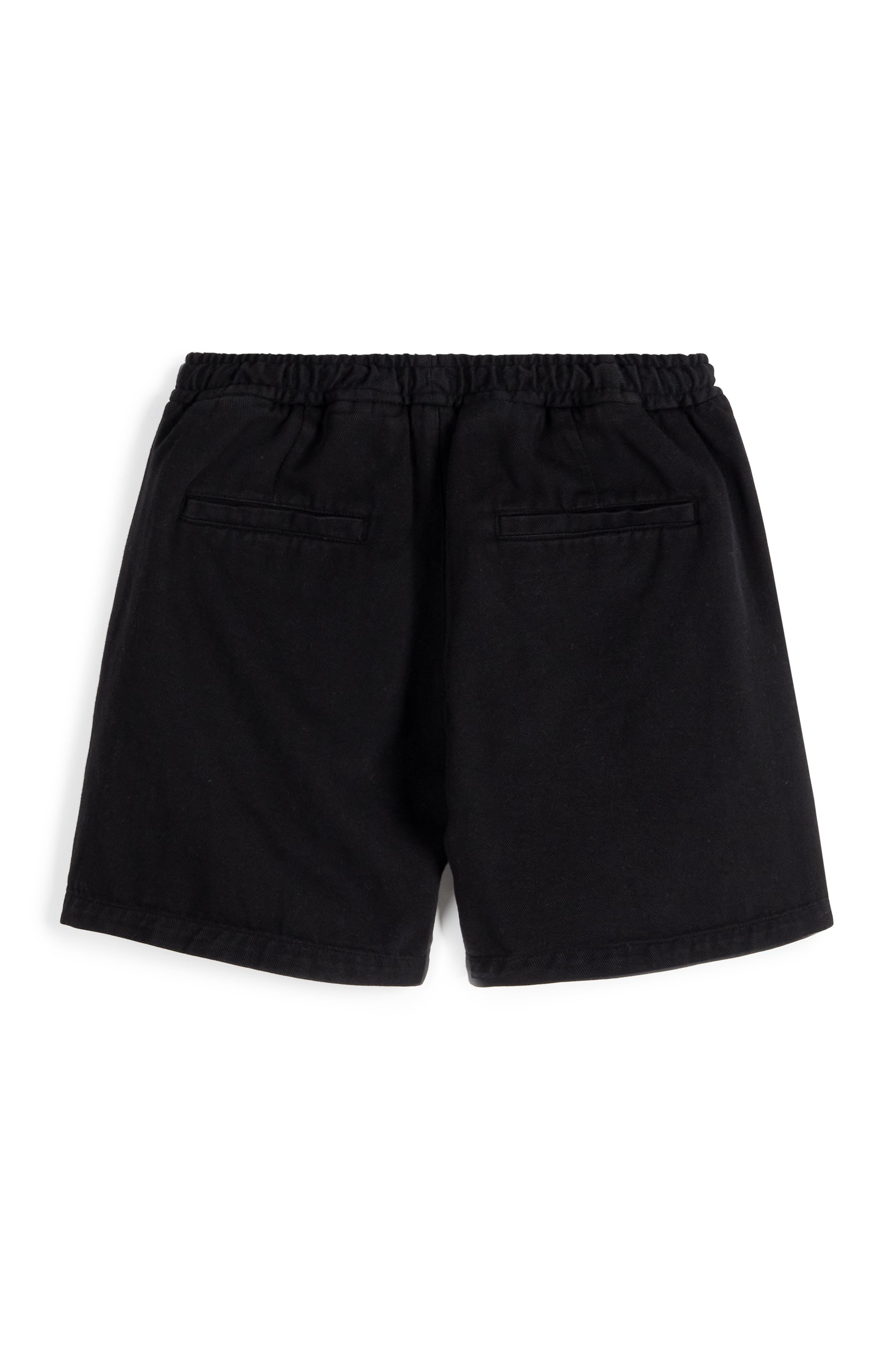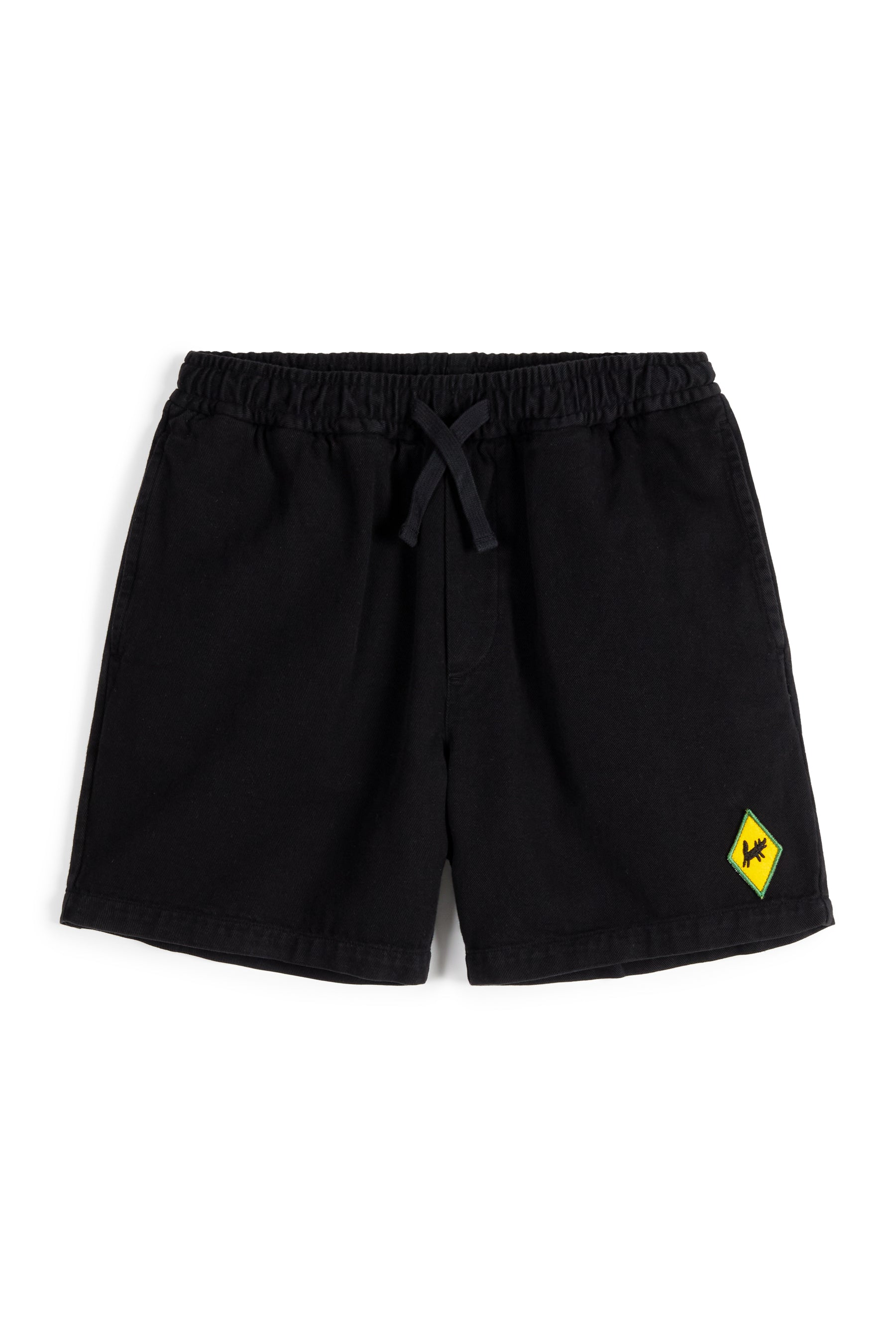 Shorts with elasticated waist with drawstring, side pockets and small patch