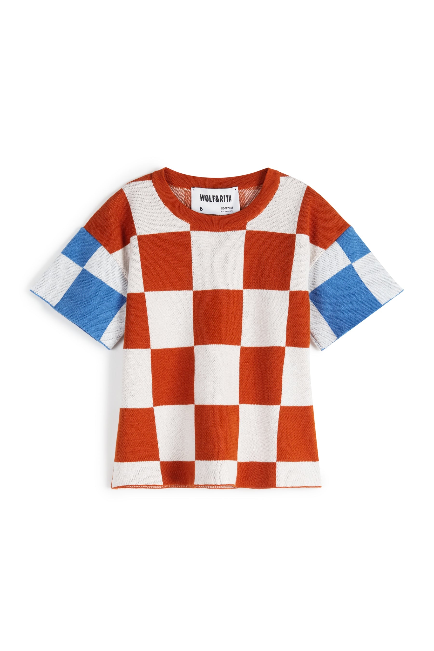 Knitted jumper in organic CO with round neckline and short contrasted sleeves