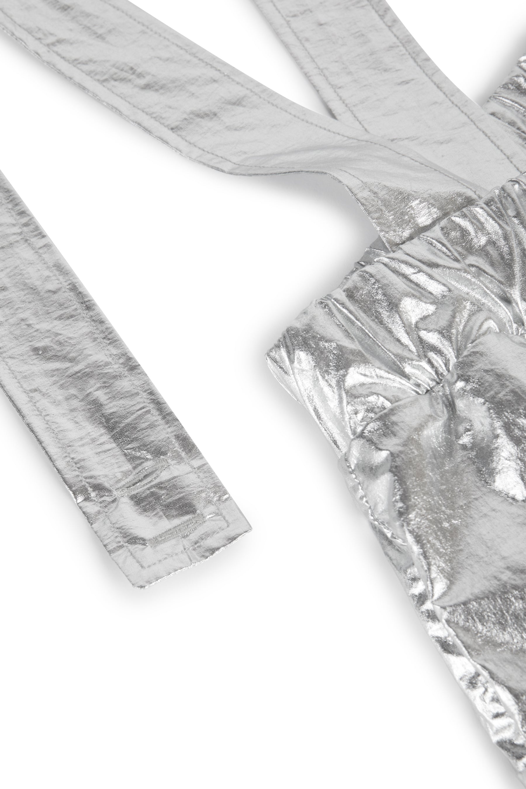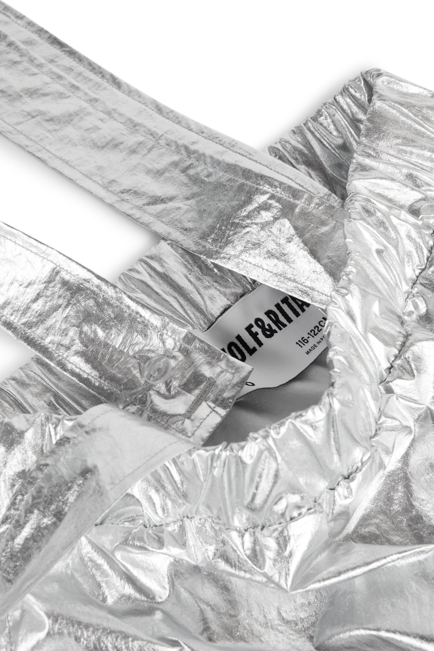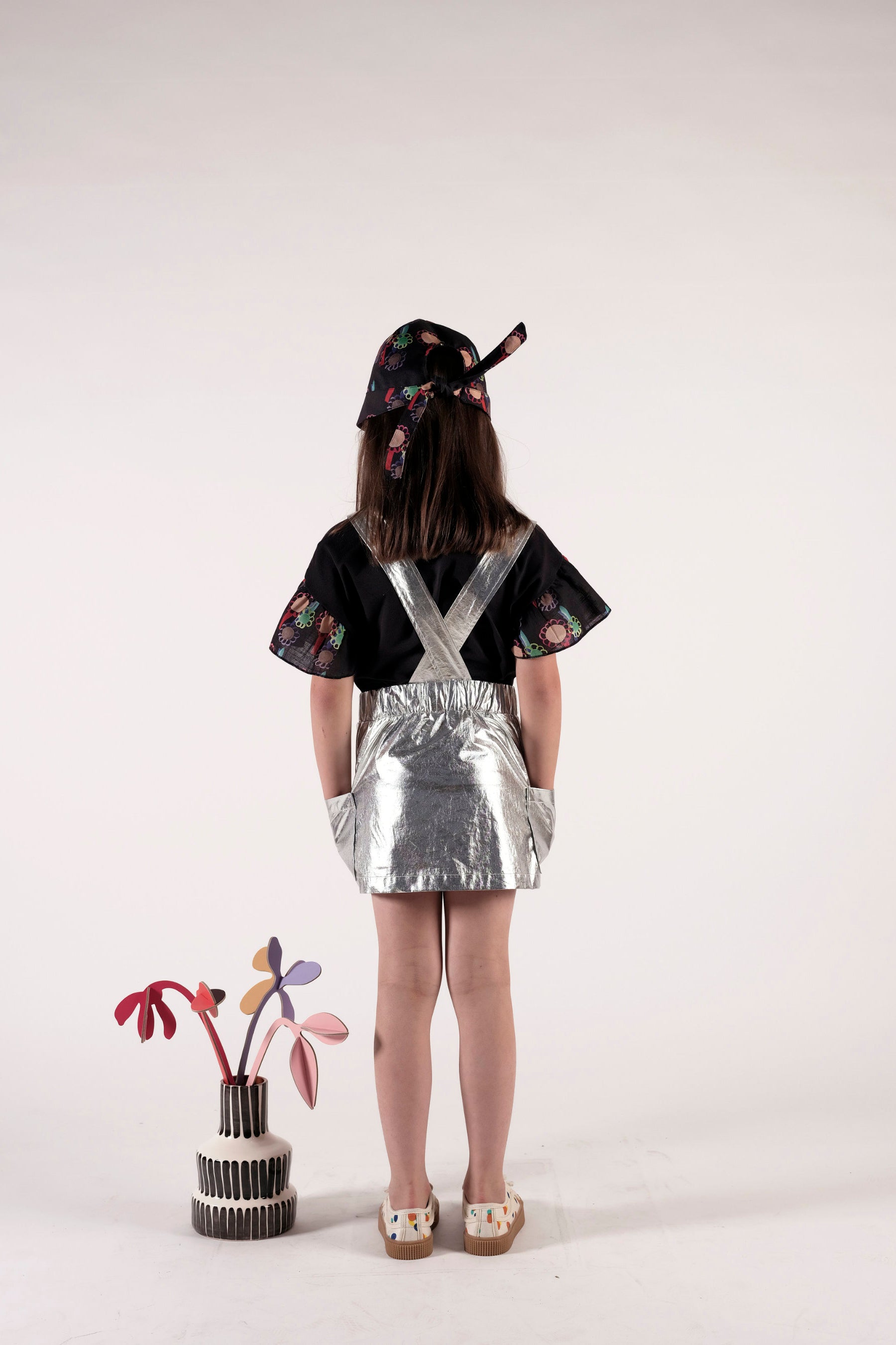 Shinny fabric mini skirt with shoulder removable straps and pockets